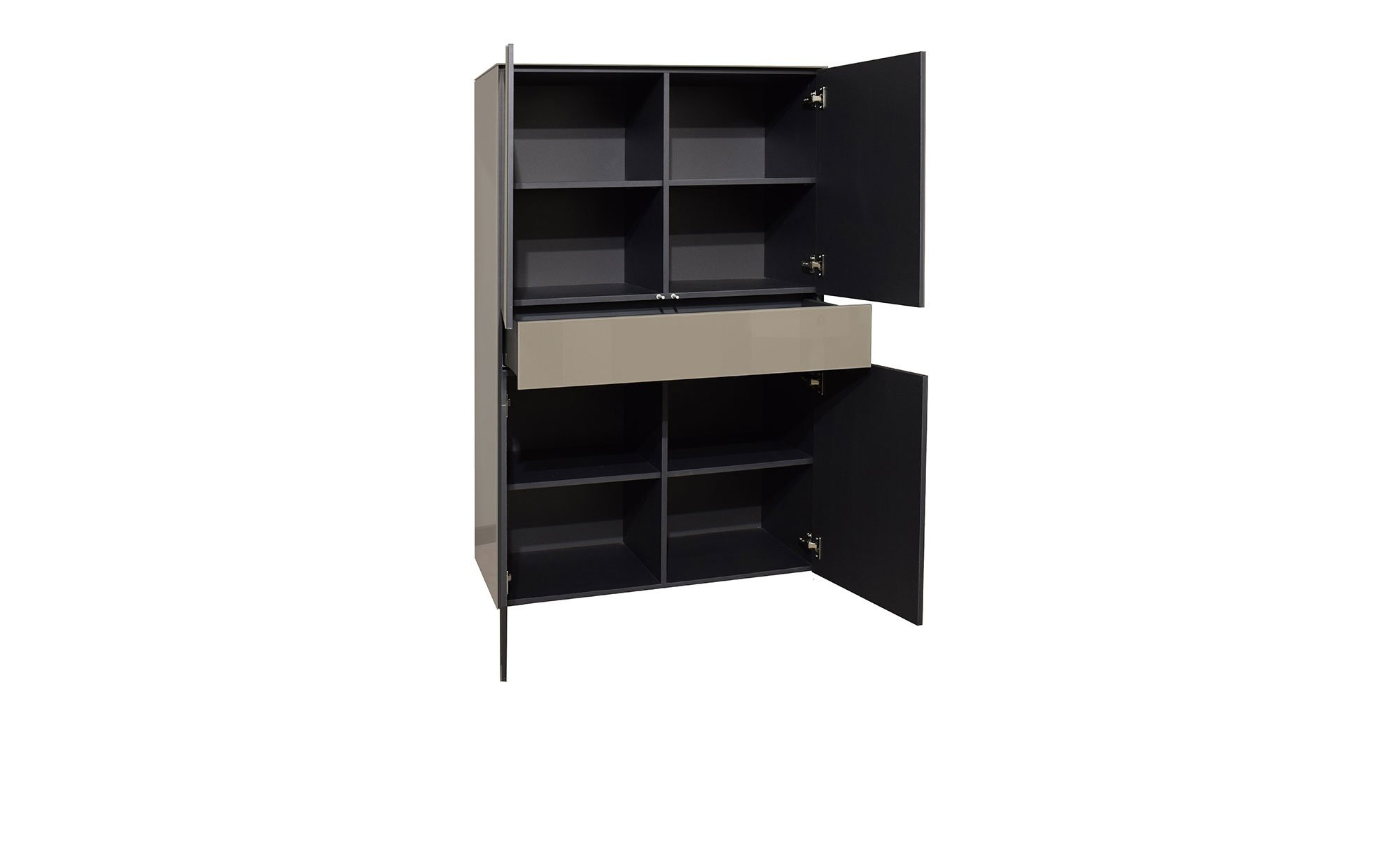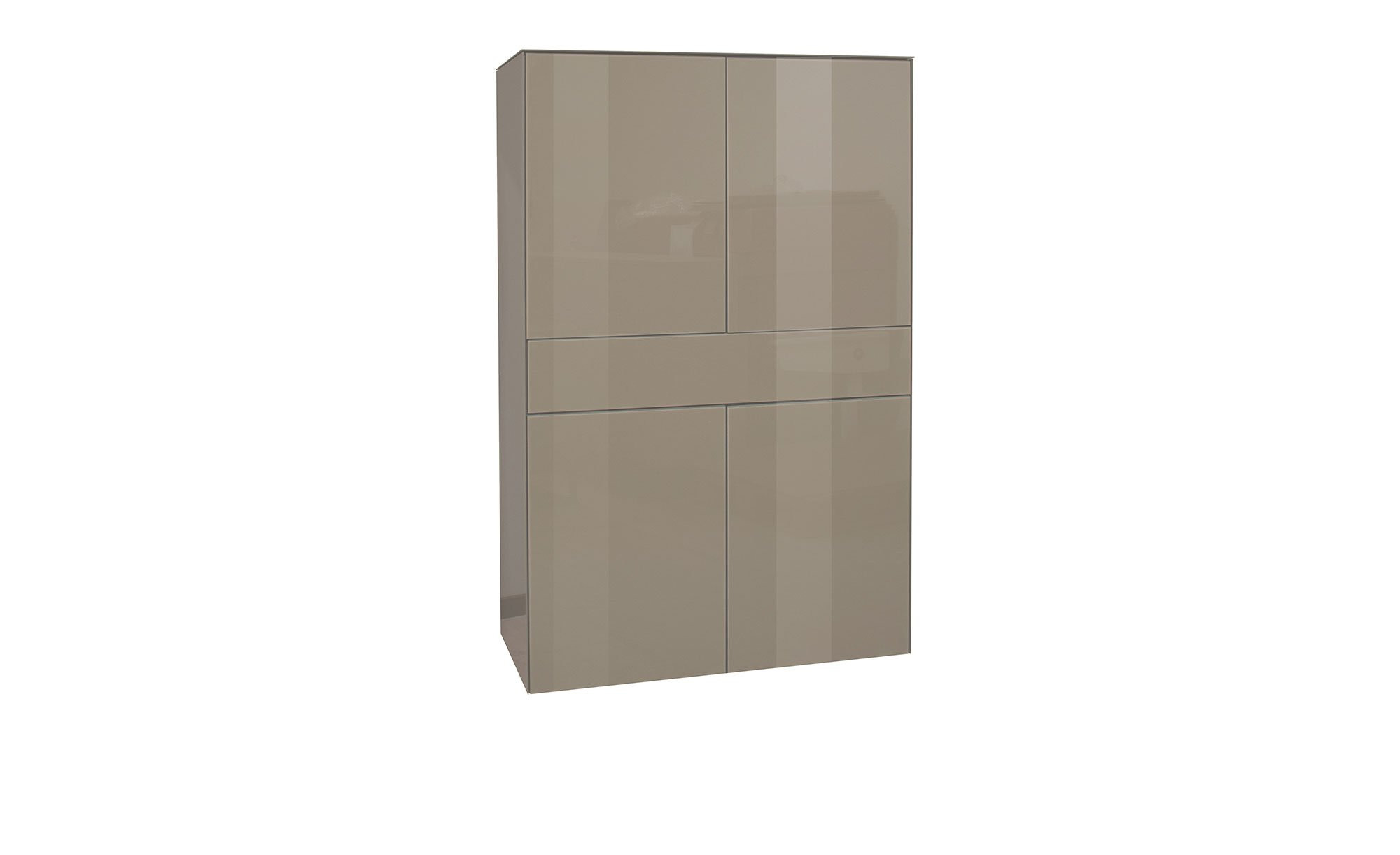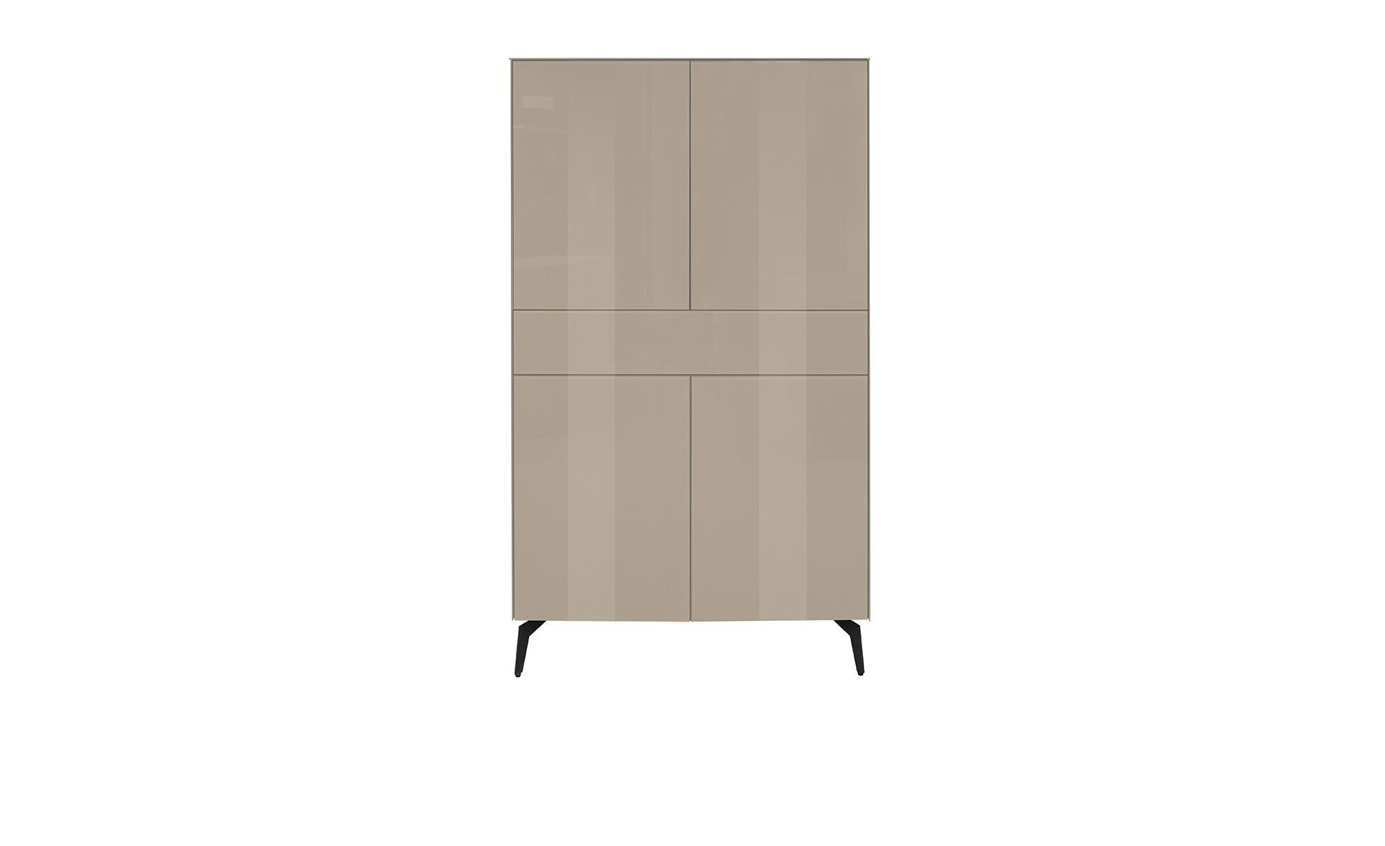 Das Highboard Couleur präsentiert sich als eleganter Blickfang und bietet zugleich viel Platz für Ihre Wohnaccessoires. Mit Maßen von ca. 91 x 140 x 42 cm ist das Möbelstück komplett in einem ansprechenden Kaschmir-Ton gehalten. Fronten und Korpus bestehen aus Glas, was dem Highboard eine moderne und helle Optik verleiht.