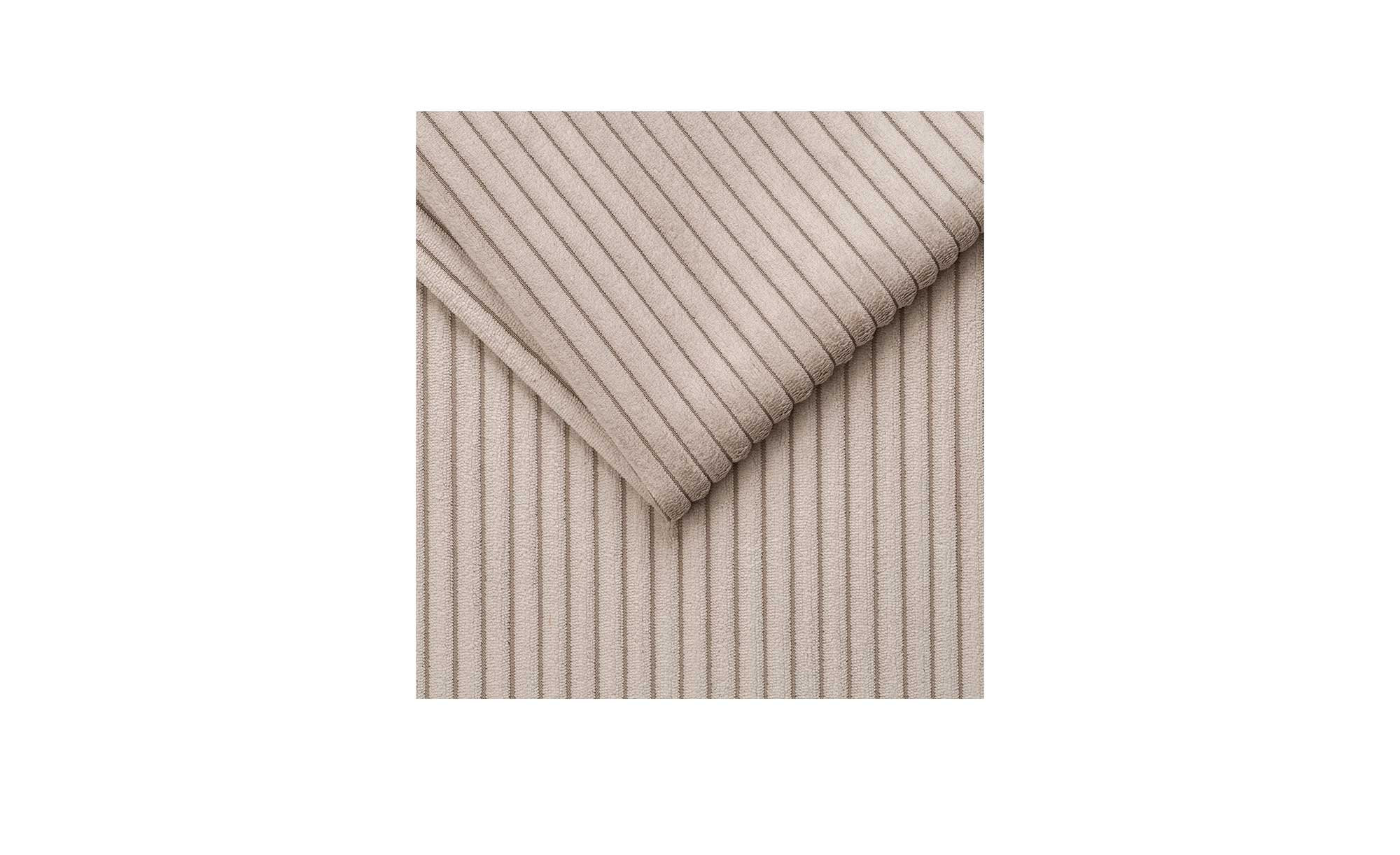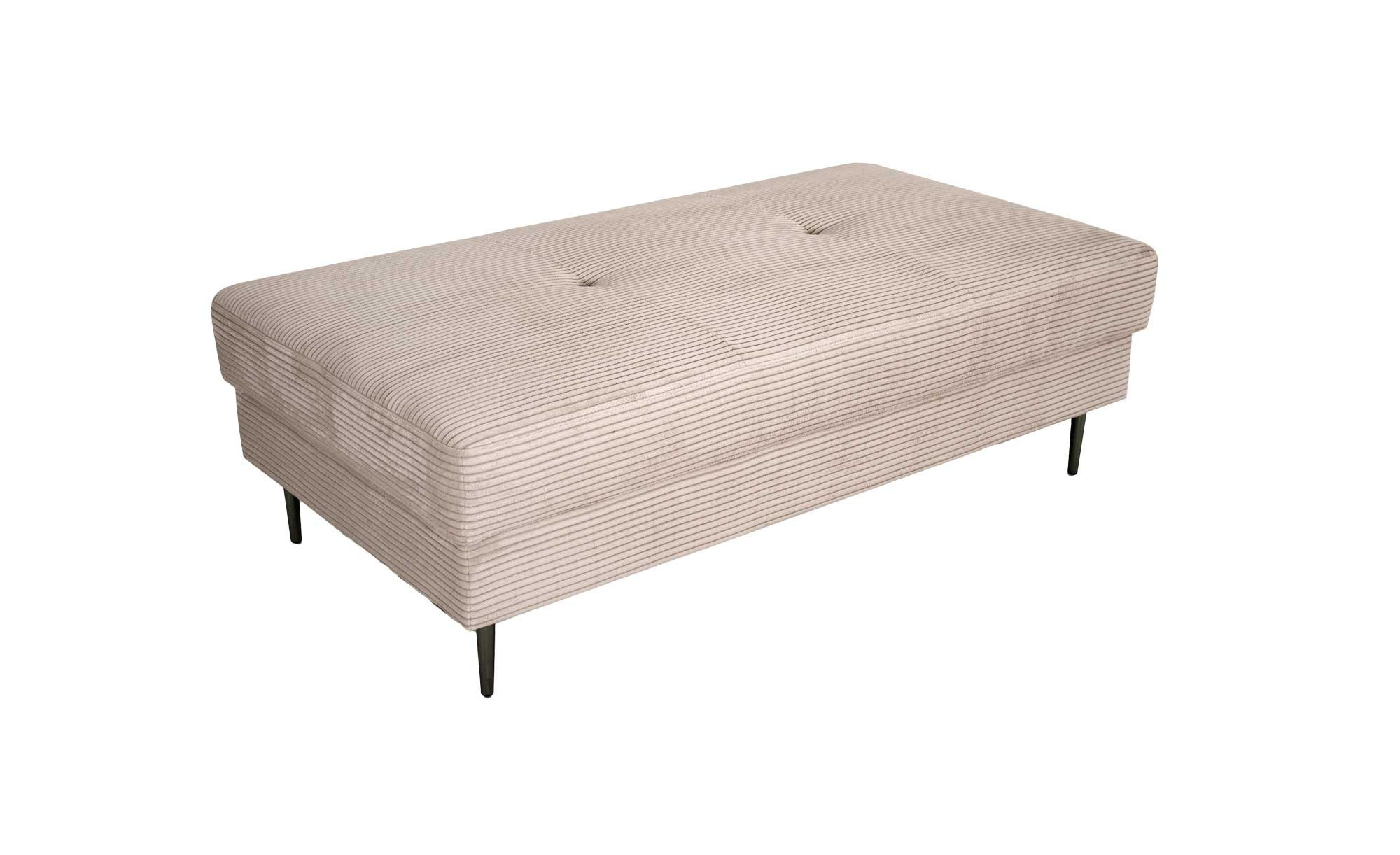 Das ca. 140 x 46 x 80 cm große Möbelstück ist eine ideale Ergänzung zu Ihrer Sitzgruppe und kann als zusätzliche Sitzfläche, praktische Ablage oder komfortable Fußstütze dienen. Sein hochwertiger Cord-Bezug in Mink begeistert mit einer samtigen Haptik und hoher Strapazierfähigkeit. Dezente, schwarze Metallfüße mit einer Höhe von ca. 15 cm runden das Design harmonisch ab.