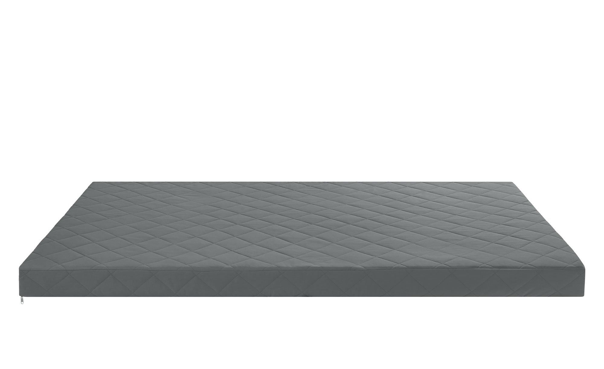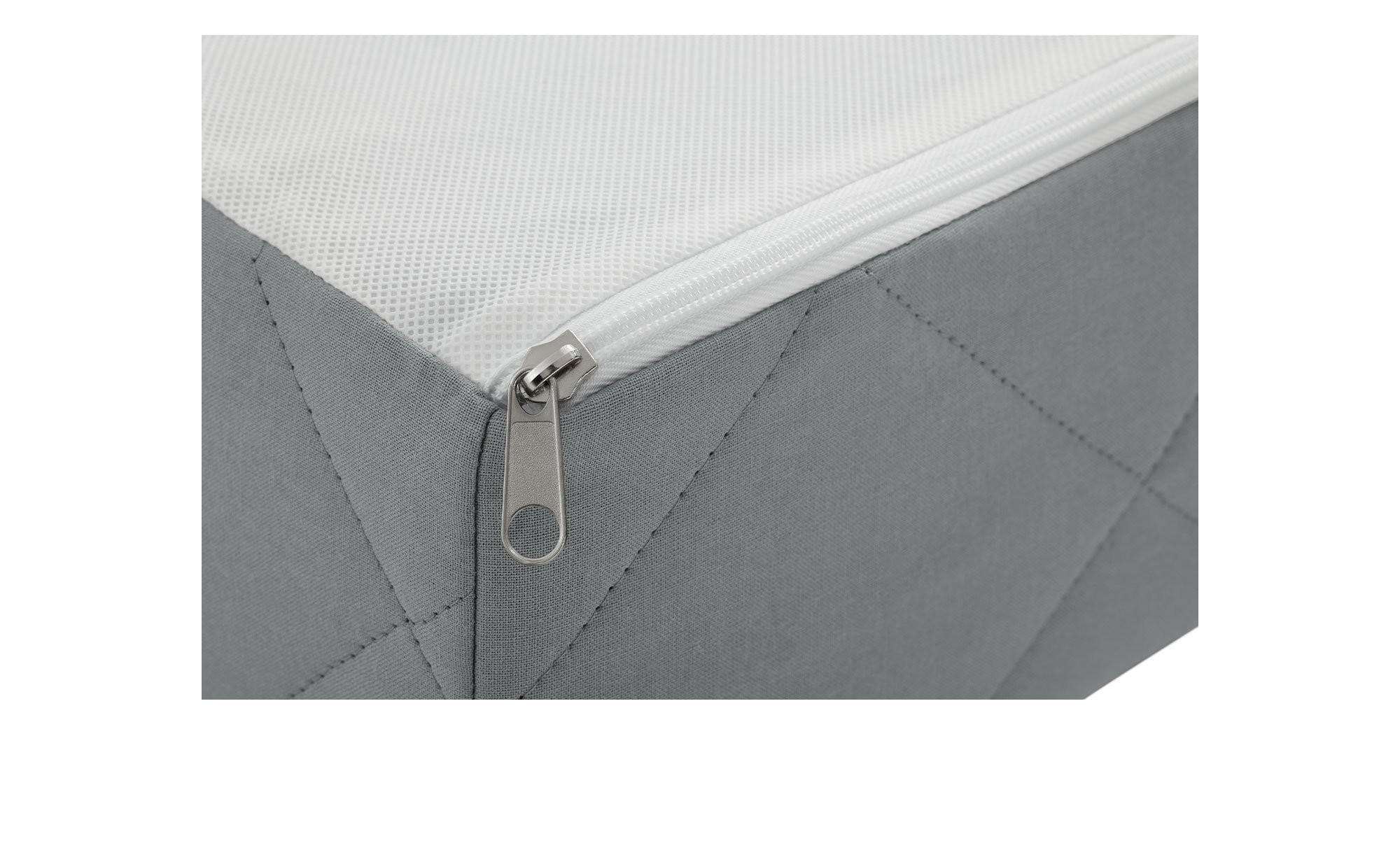 Ein gesteppter Bezug aus 100 % Baumwolle umschließt den Matratzenkern. Er ist in einem stilvollen Anthrazit gehalten und zusätzlich mit Vlies unterfüttert. Dank der integrierten quer- und längsseitigen Reißverschlüsse können Sie den Bezug bei Bedarf jederzeit abnehmen und ihn bei 30 °C waschen.