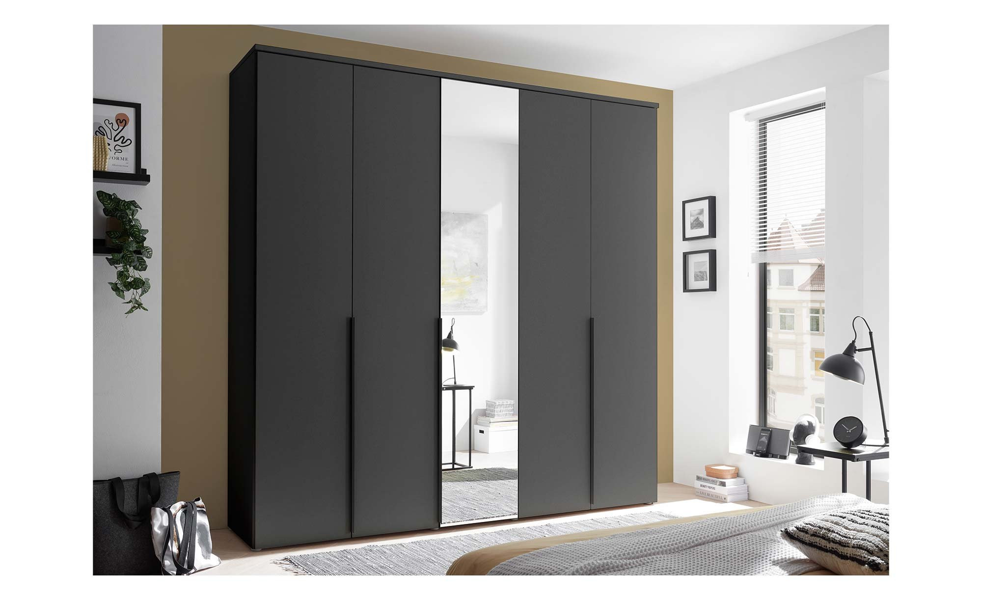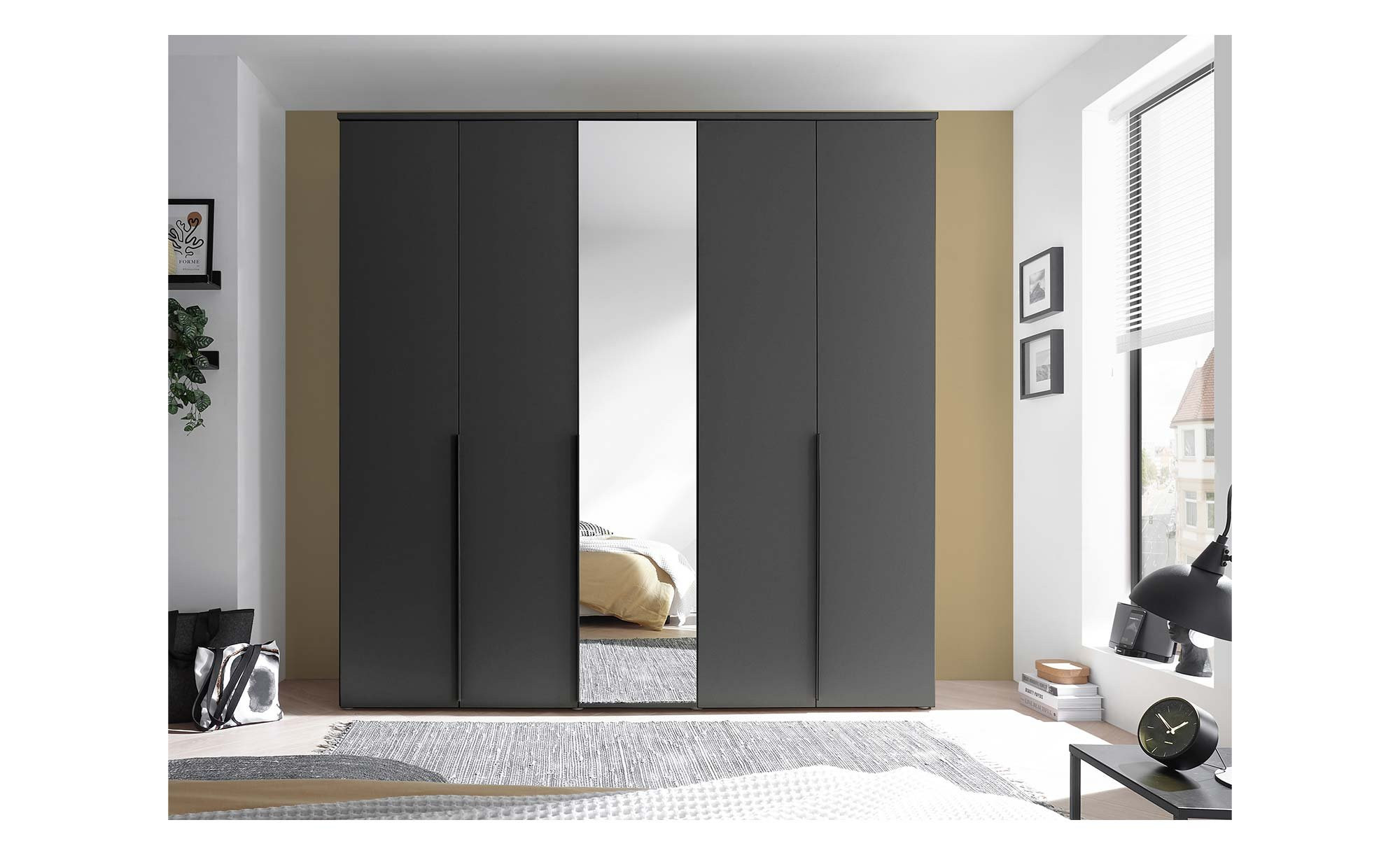 - Drehtürenschrank 5-türig (4x Holztüren und 1x Spiegeltür)
