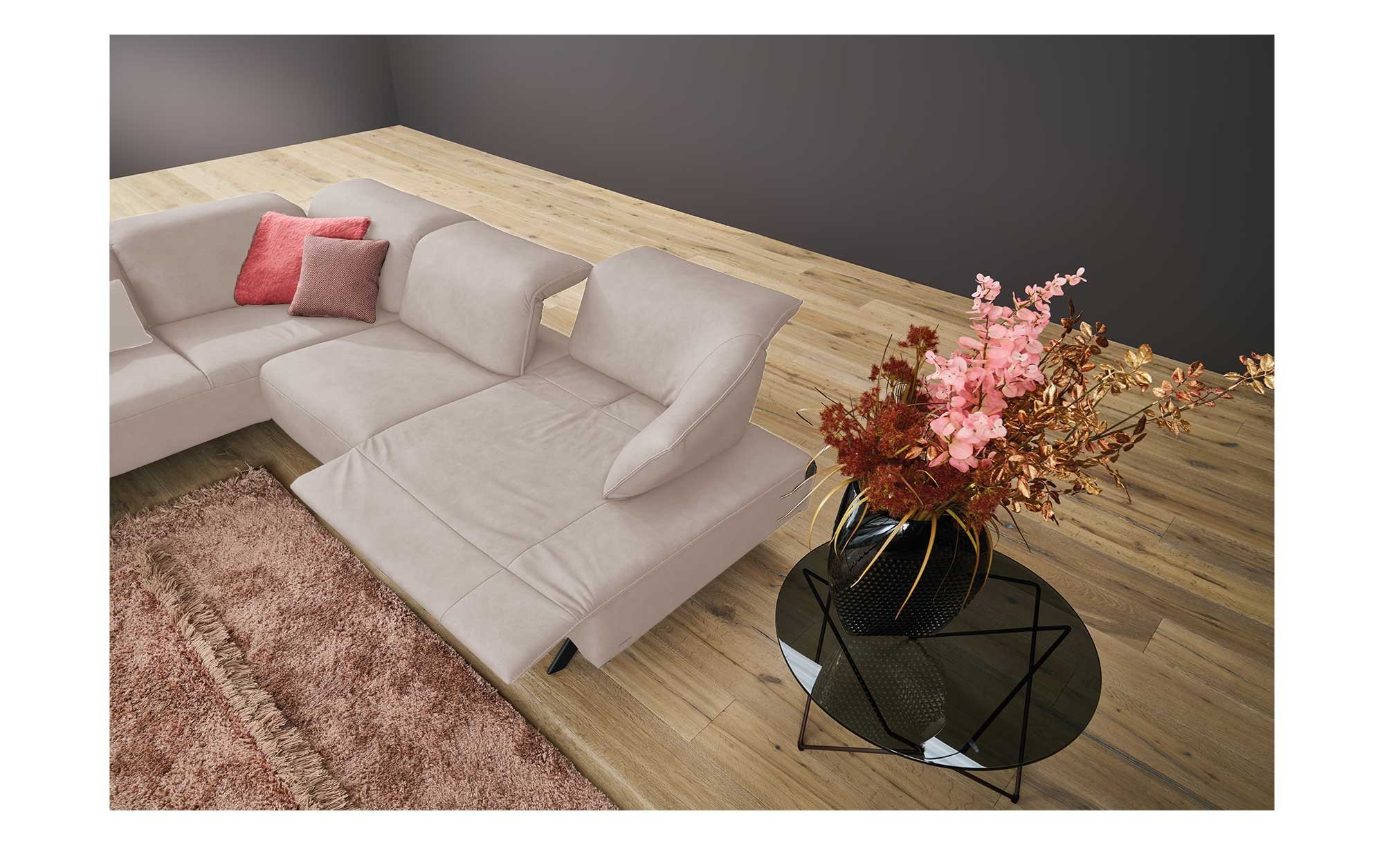 Zum Angebot gehören mehrere Kissen in der Bezugsfarbe, bzw. mit einem Bezug in Arktis Blumenmuster. Zusätzlich sorgt eine Superlastic Soft-Polsterung für ein angenehmes Sitzgefühl. Mittels einer elektrischen Fußteilverstellung sowie der manuellen Sitztiefen- und Kopfteilverstellung passen Sie das Komfort-Ecksofa 1052 vollkommen individuell auf Ihre Bedürfnisse an.