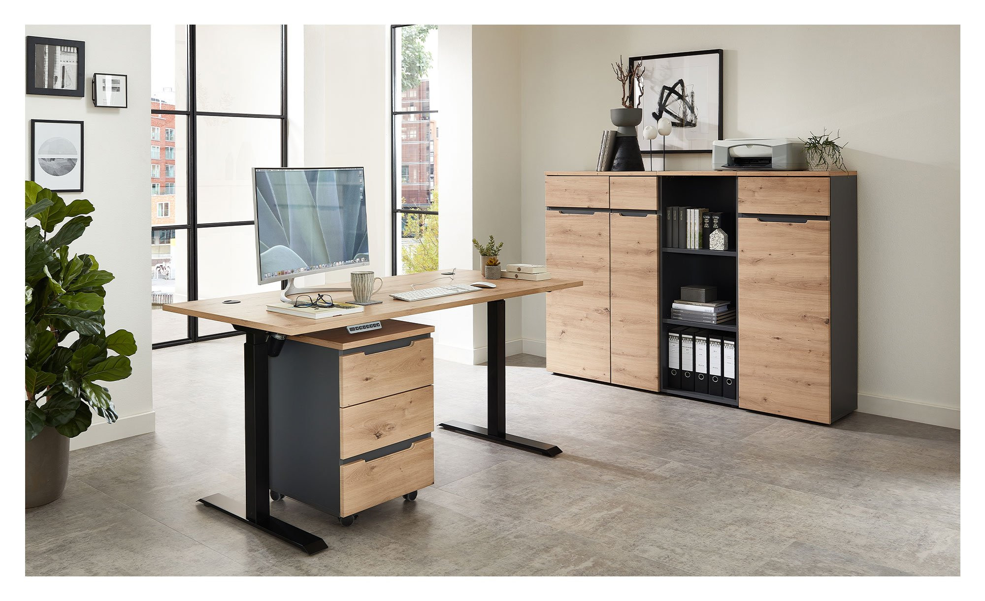Die modern gestaltete Kommode Melanie hilft Ihnen dabei, den Platz in Ihrem Arbeitszimmer auf bestmögliche Weise zu nutzen.