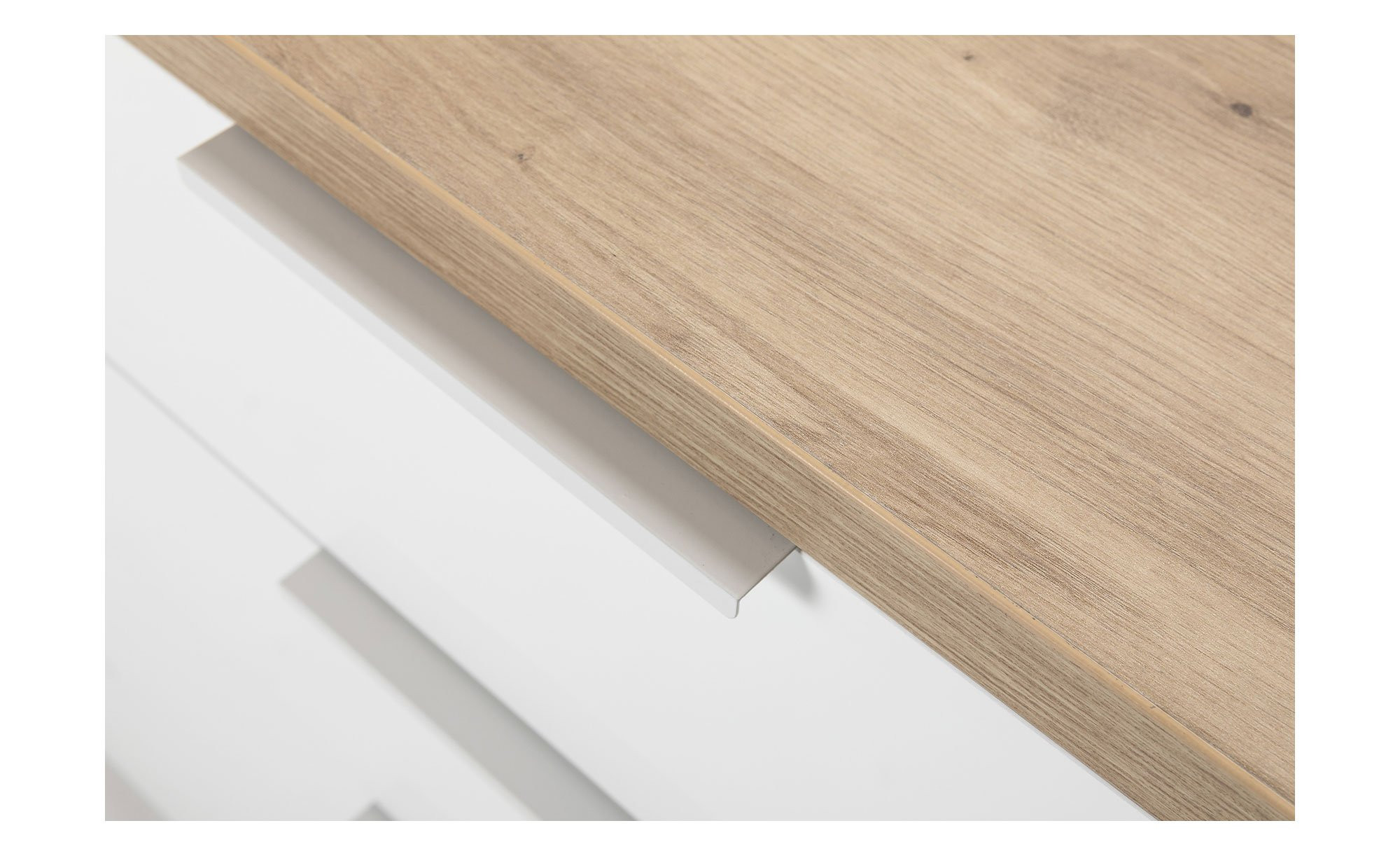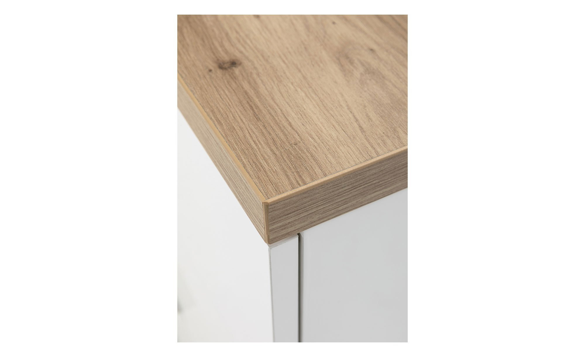 - In Weiß mit einer Absetzung in Artisan Eiche