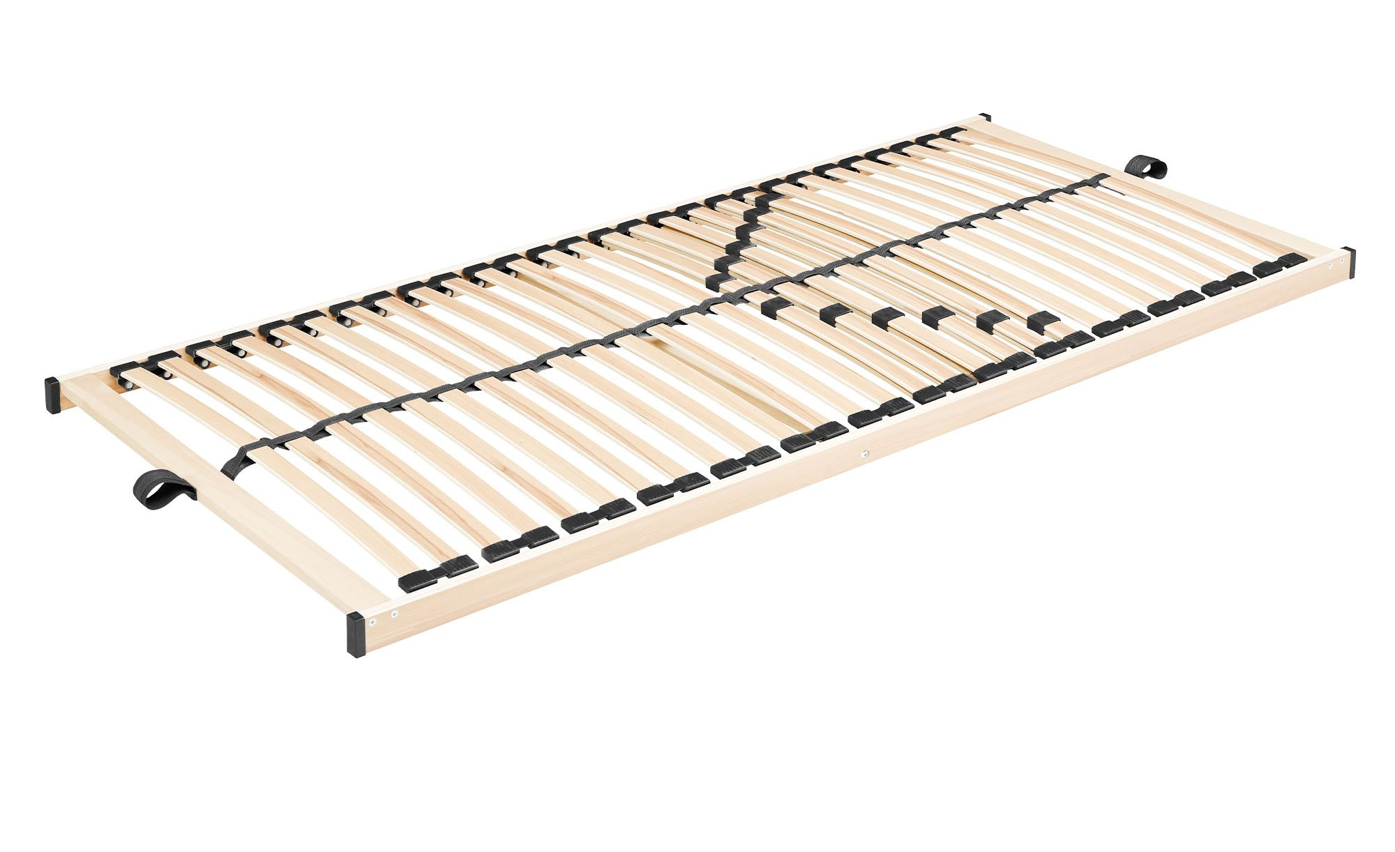 Der ca. 90 x 5 x 200 cm große Artikel verfügt über einen Rahmen aus Holz und Kunststoffkappen. Innenliegend befinden sich 28 Federleisten aus Birkenholz. Zudem dürfen Sie sich auf sechs Härtegradversteller zur individuellen Anpassung freuen.