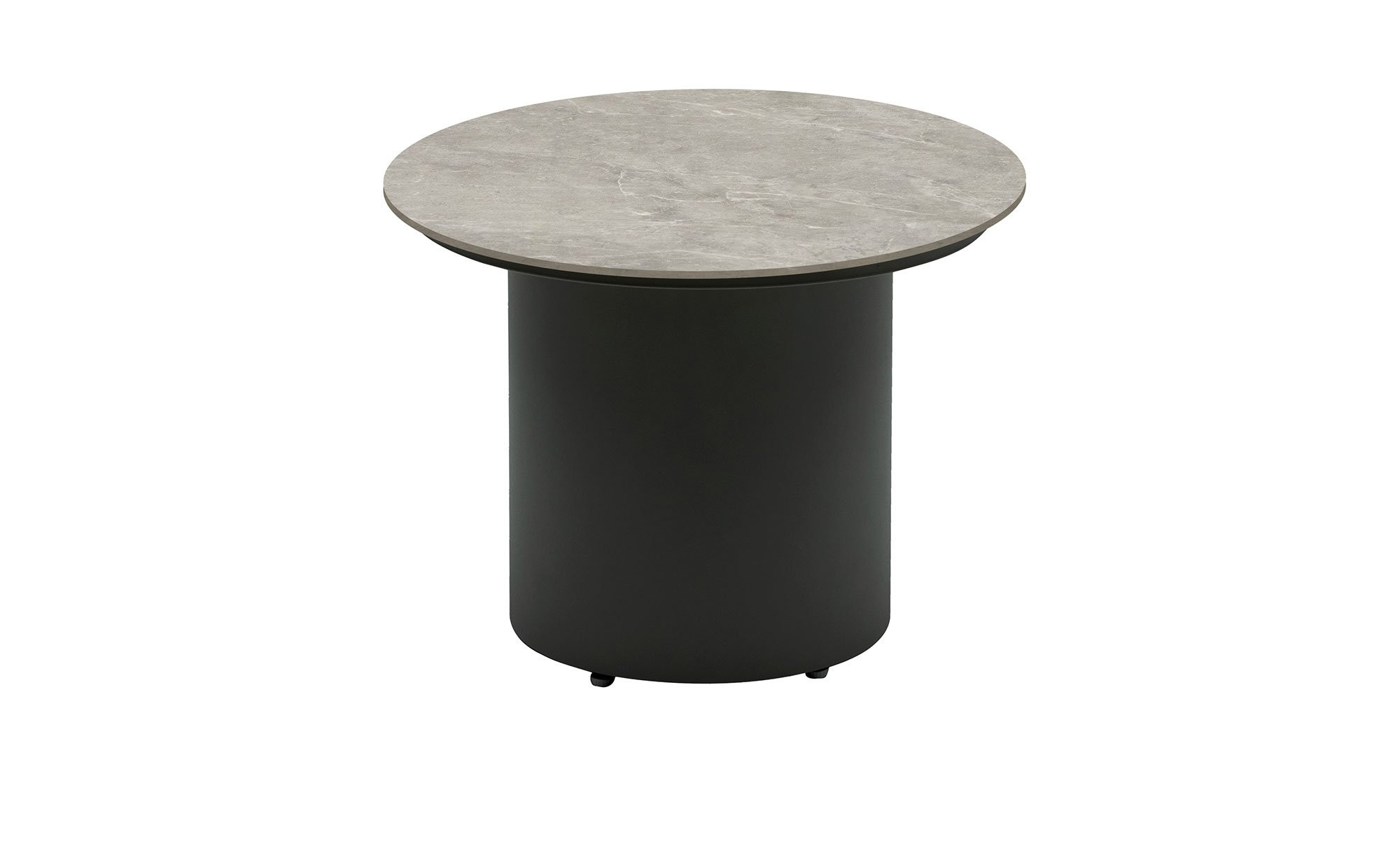 Der ca. 50 x 38 x 50 cm große Artikel verfügt über ein stabiles Säulengestell aus Aluminium im Farbton Anthrazit. Ergänzt wird dieses durch eine runde Tischplatte aus gesintertem Stein in Beton-Optik, die farblich perfekt abgestimmt ist und das moderne Erscheinungsbild harmonisch abrundet.