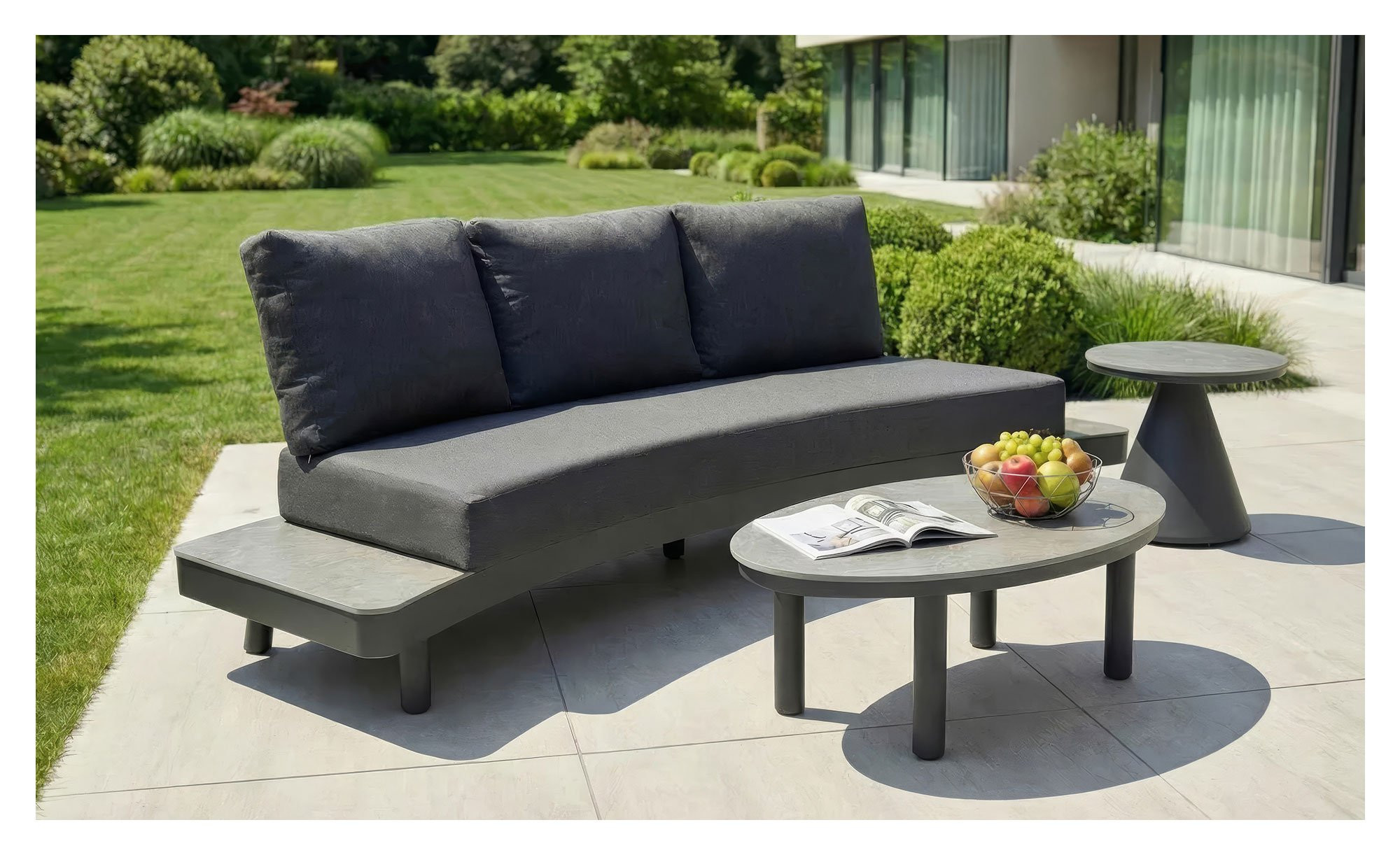 Das Möbelstück misst ca. 50 x 43 x 50 cm und verfügt über ein anthrazitfarbiges Aluminiumgestell in Kegelform. Seine runde Tischplatte aus gesintertem Stein in Beton-Optik unterstreicht zusätzlich den modernen Look des Gartentisches. Da der LC Garden Beistelltisch Puerto speziell für den Outdoor-Bereich entwickelt wurde, ist er selbstverständlich UV- und wetterfest und somit bestens für einen dauerhaften Einsatz im Freien geeignet.
