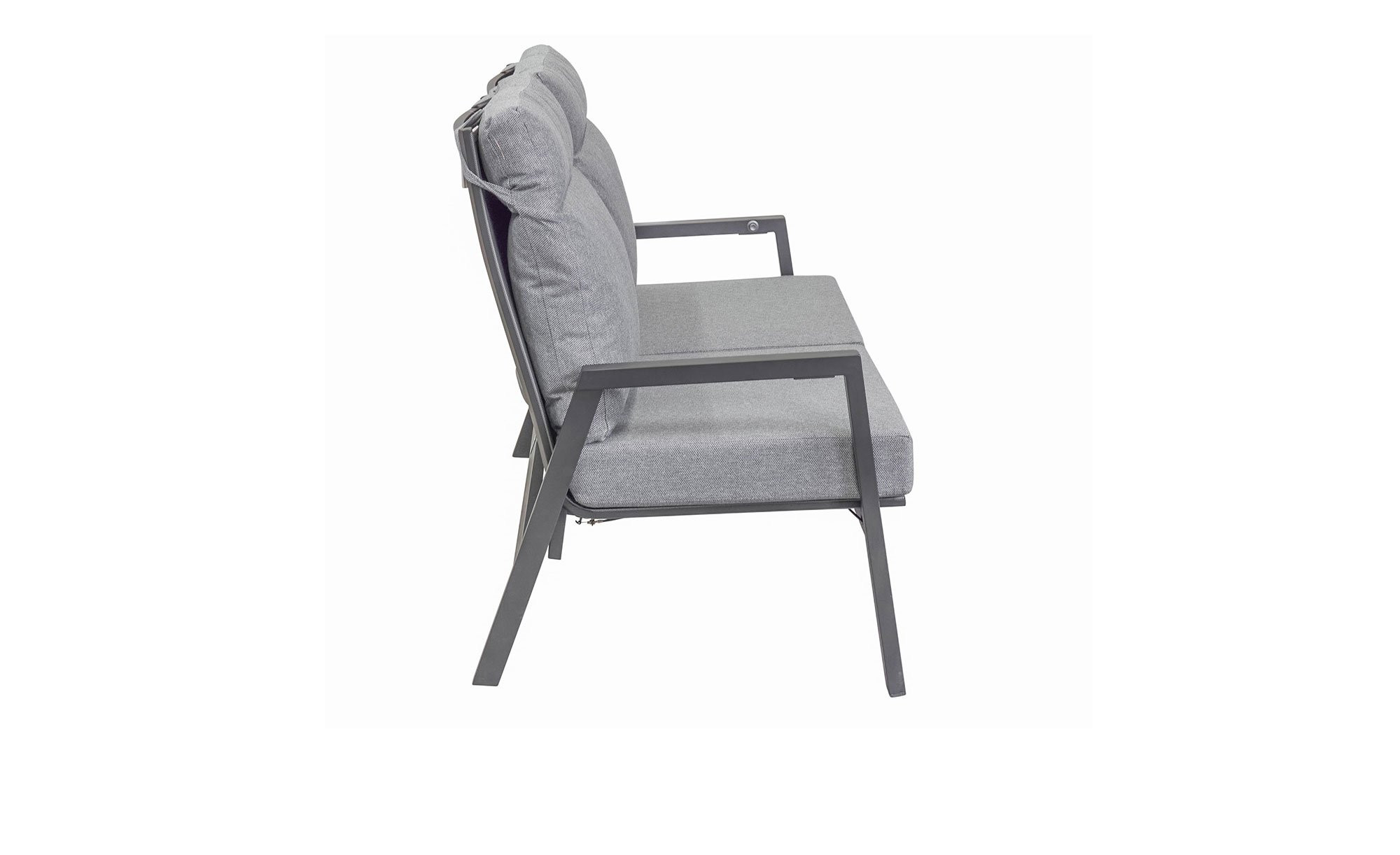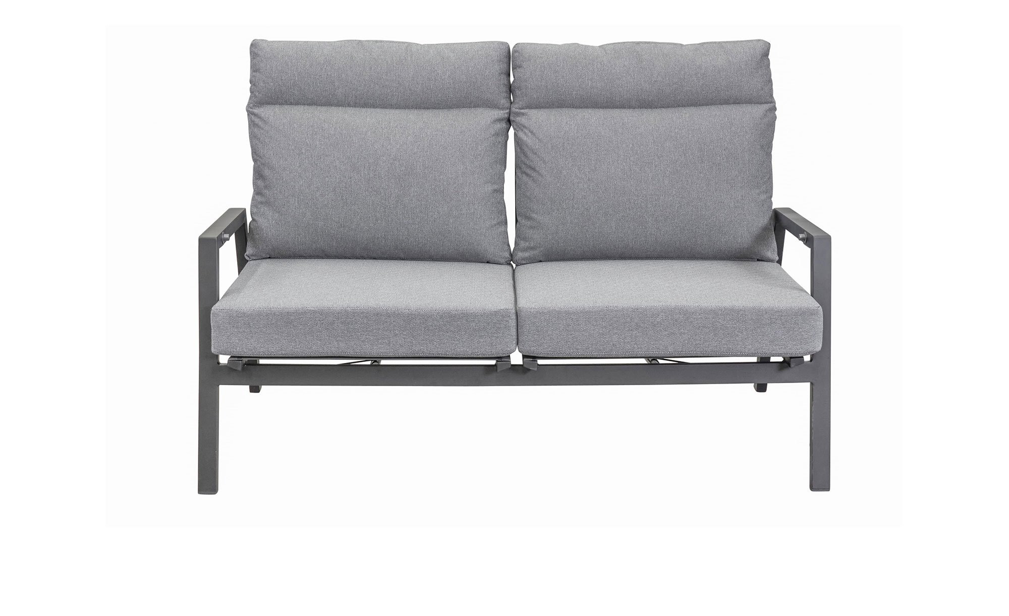 Das Gartensofa von LC Garden ist ca. 152 x 98 x 81 cm groß. Sein stabiles Gestell besteht aus Aluminium in einem edlen Anthrazit. Dazu passen auch die mitgelieferten, ca. 12 cm starken Sitz- und Rückenpolster mit ihren hellgrauen Bezügen aus Polyester. Ohne die Auflagen sind die Sitze ca. 34 cm hoch. Bei Bedarf können Sie den Rücken des LC Garden Gartensofas Belinda individuell verstellen. Nehmen Sie also ganz flexibel Ihre Lieblingsposition ein! Da der Artikel für eine Nutzung im Freien konzipiert wurde, ist er selbstverständlich auch wetter- und UV-beständig.