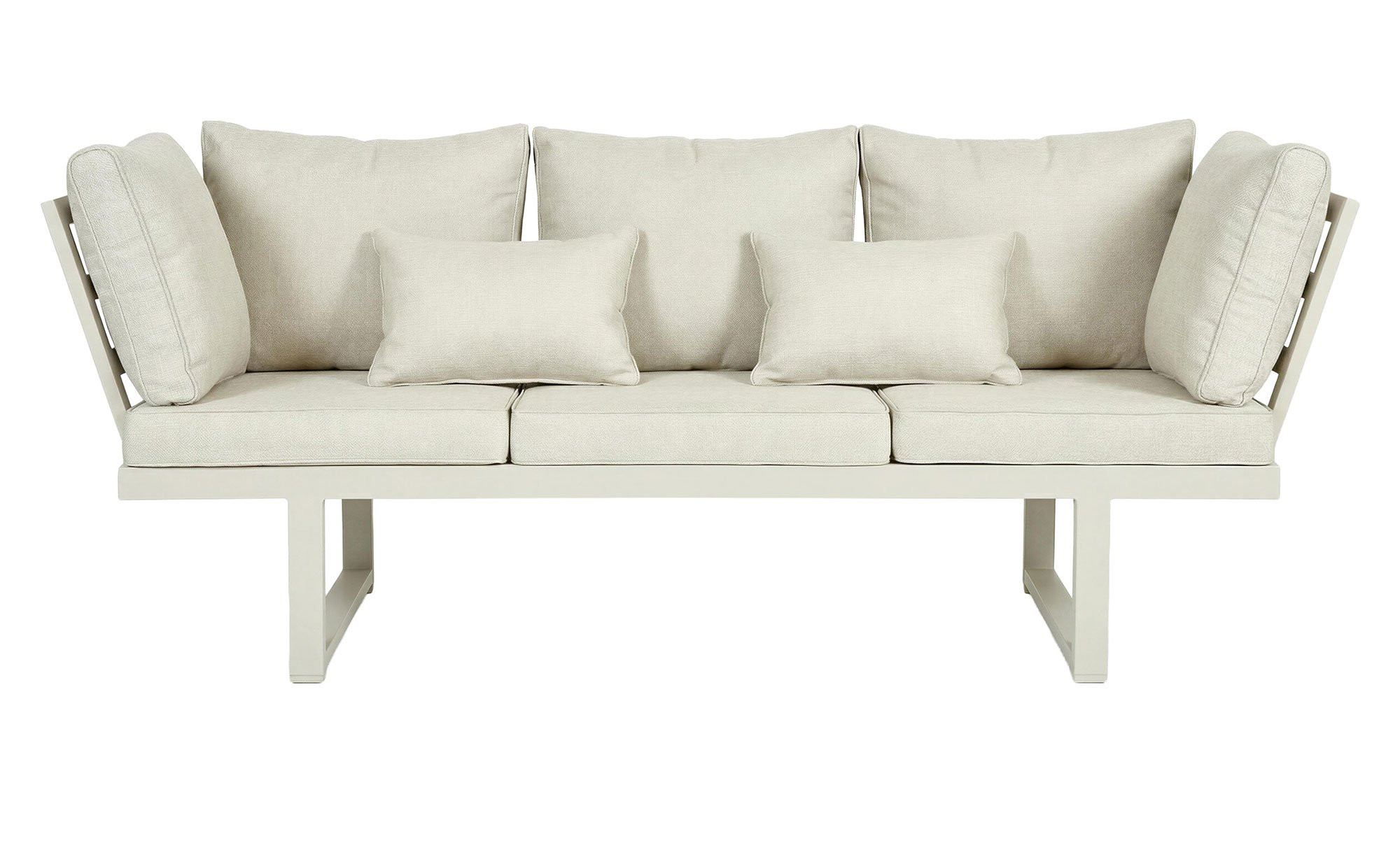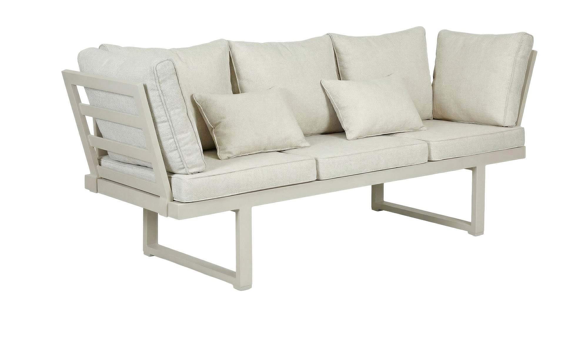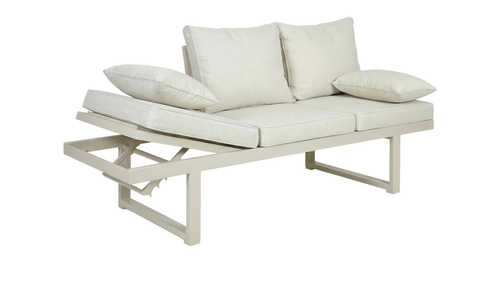 Das LC Garden Gartensofa Bondino verfügt über ein stabiles Gestell aus Aluminium im Farbton Taupe. Dieses bildet die stabile Basis des ca. 202 x 82 x 7 cm großen Artikels und ist bei Bedarf auch schnell und einfach als Liege einstellbar. Im Angebot enthalten sind zudem bequeme Sitz- und Rückenpolster mit einem robusten Bezug aus Olefin in Beige. Pro Sitzeinheit ist eine Belastung von max. 110 kg möglich.