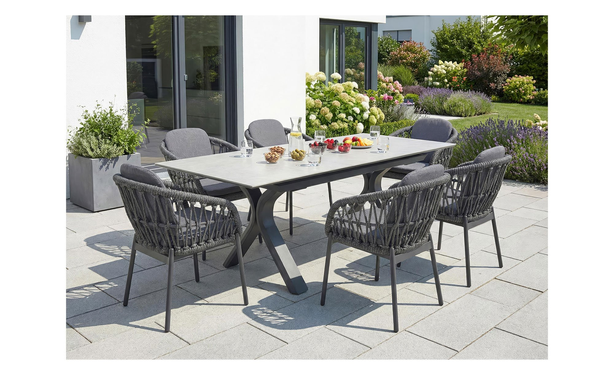 - Kratzfeste Tischplatte aus wetterbeständigem Sinterstein