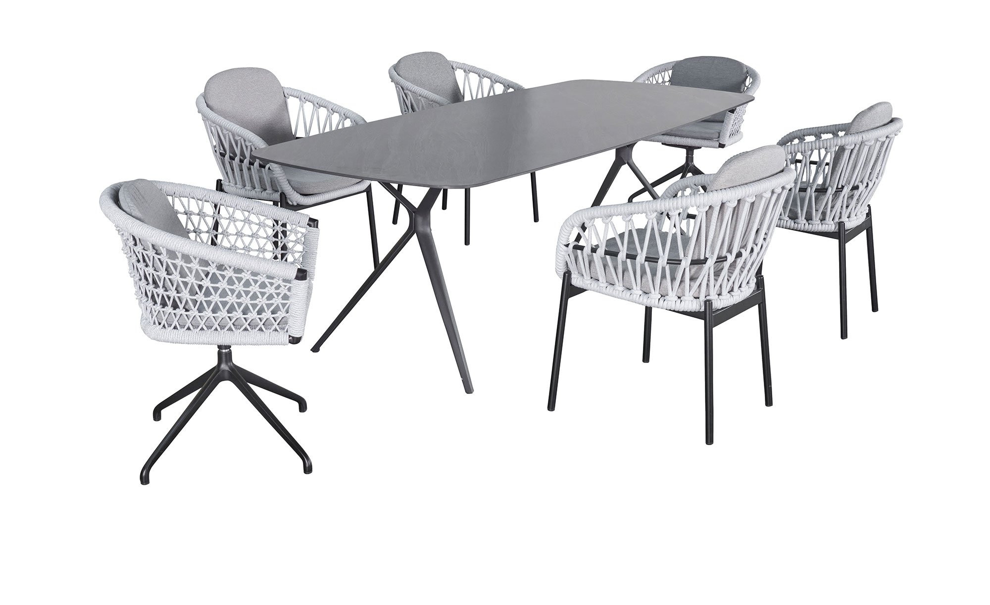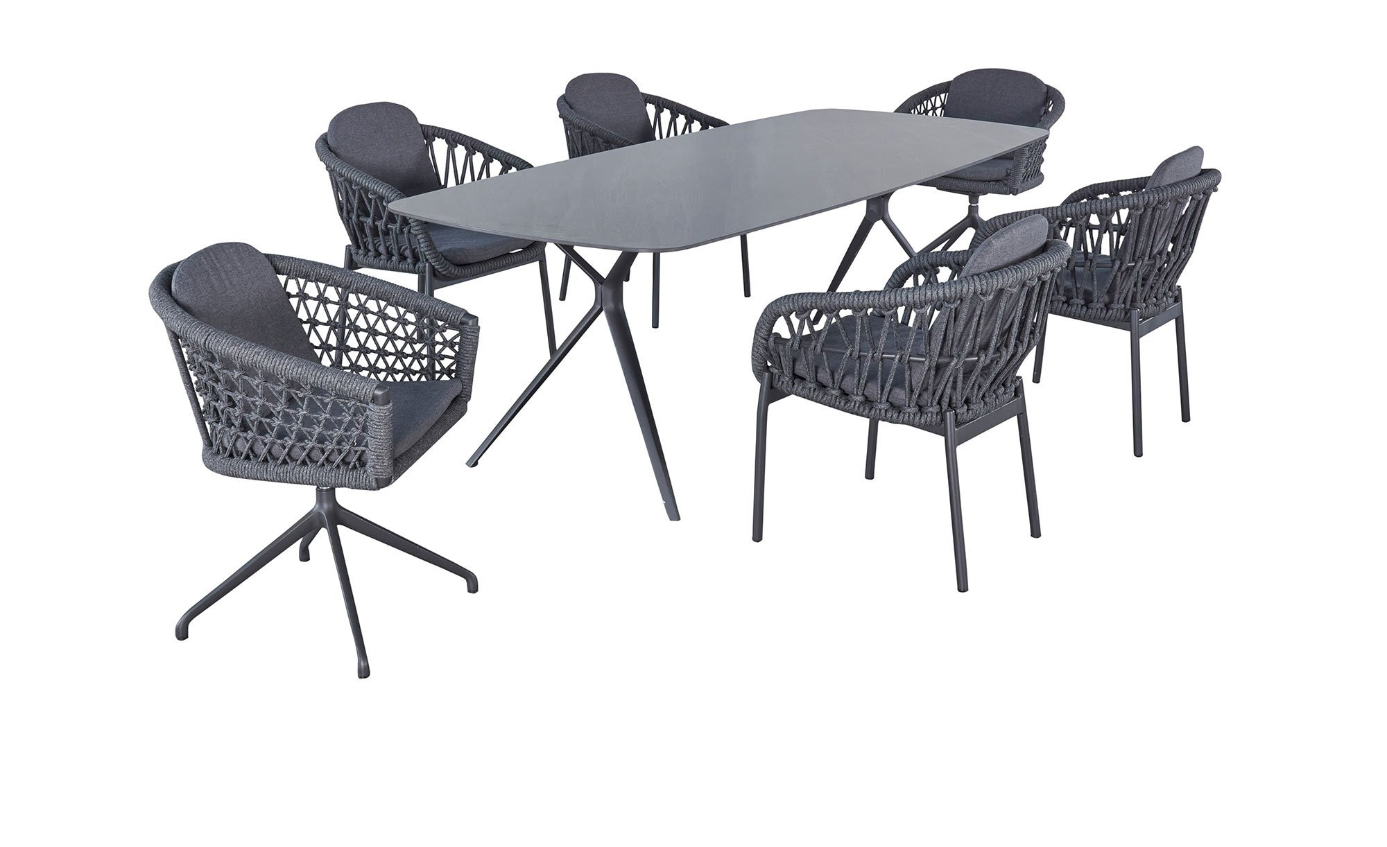 Die Platte des LC Garden Gartentischs Cliff besteht aus widerstandsfähigem sintered stone in Anthrazit. Passend dazu erwartet Sie ein leichtes Stativ-Gestell aus pulverbeschichtetem Aluminium. Mit der gleichen Farbe fügt es sich stimmig ins Gesamtbild.