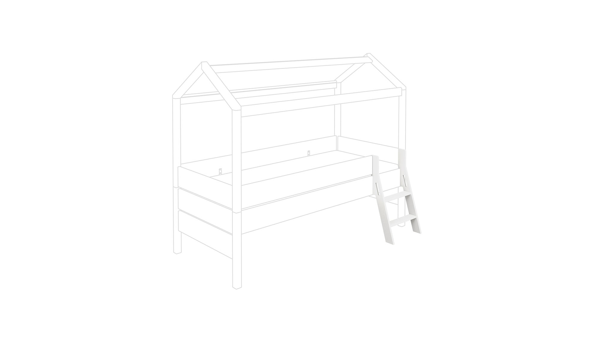 Wie auch der Rahmen des Betts ist die dazu passende Leiter im Dekor Kreideweiß gestaltet. Das gemeinsame Außenmaß beträgt ca. 122 x 175 x 210 cm.