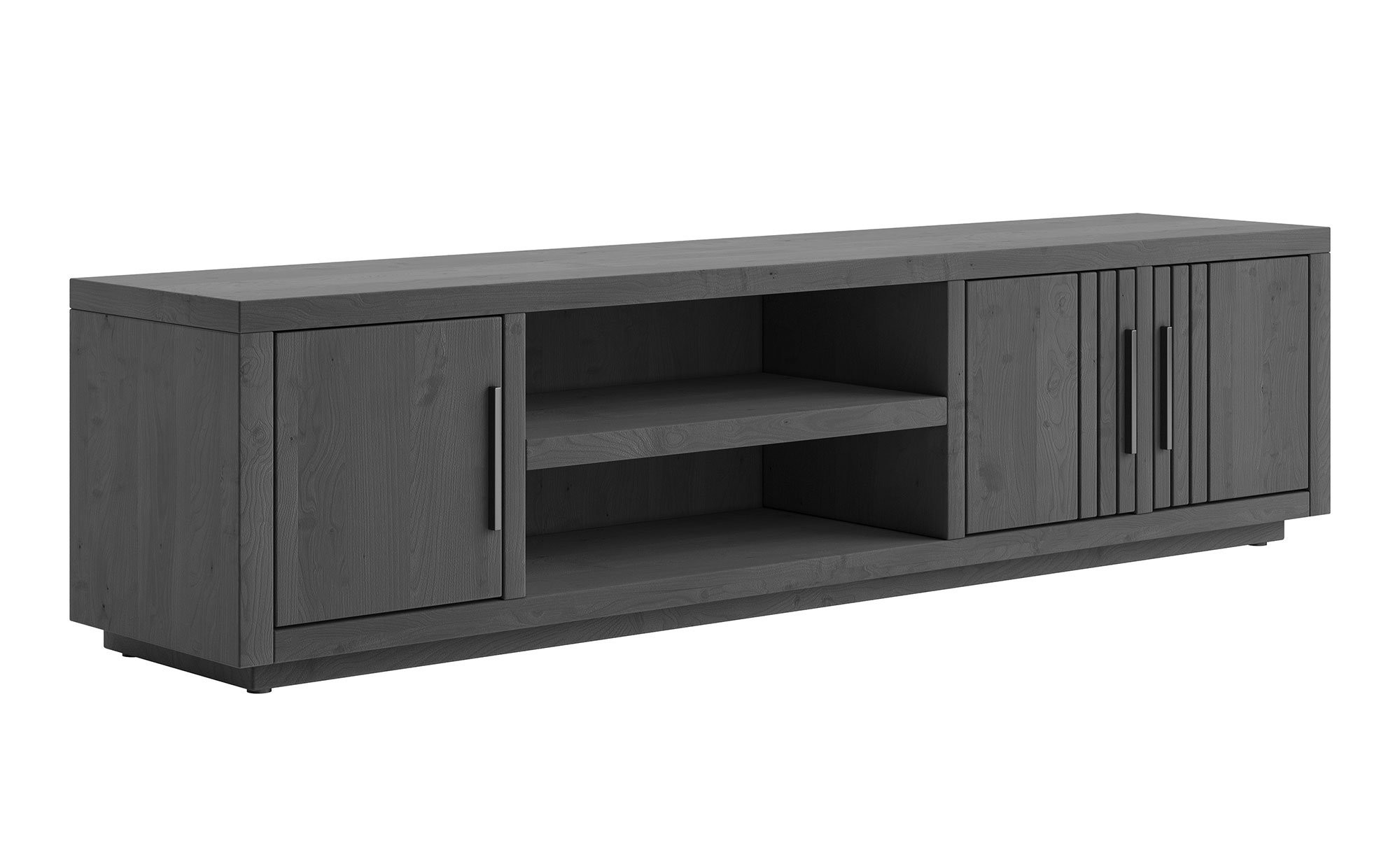 Neben Ihrem Fernseher finden in den zwei Fächern und hinter drei gedämpften Türen des Lowboards sämtliche Zubehörteile Platz. Egal ob Receiver, Blu-ray-Player oder Filme, hier können Sie alles ordentlich und stilvoll verstauen.