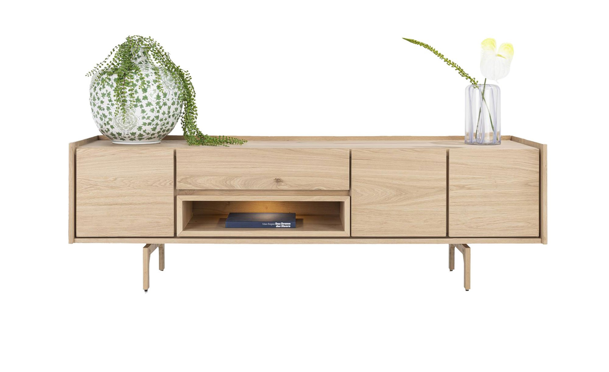 Mit modernem Design, natürlichem Flair und einem großen Angebot an Stauraum begeistert das Lowboard Valgard in jeder Hinsicht.