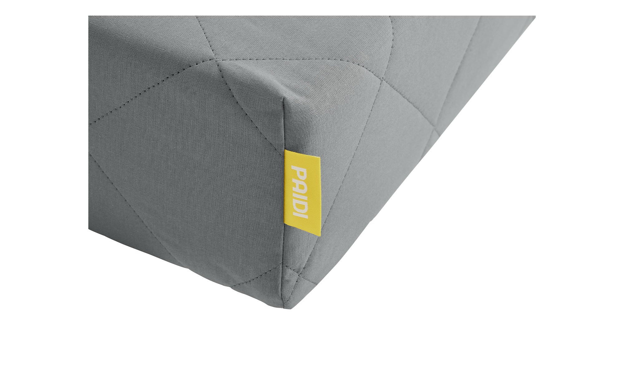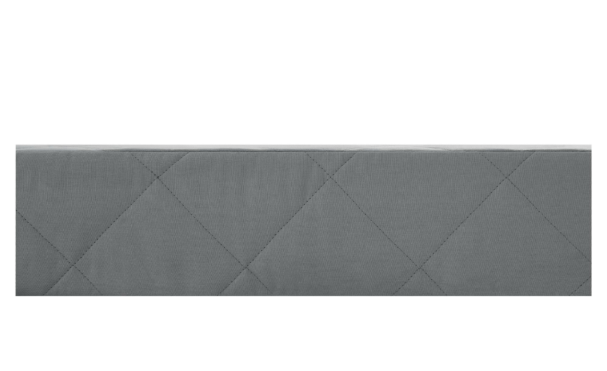 Ein Anthrazit-farbiger Bezug aus 100 % Baumwolle, gesteppt und mit Vlies unterfüttert, schützt den Kern und sorgt für zusätzlichen Komfort. Die integrierten Reißverschlüsse an den Quer- und Längsseiten gestalten das Abnehmen ganz einfach, außerdem ist eine Wäsche bei 30 °C möglich.