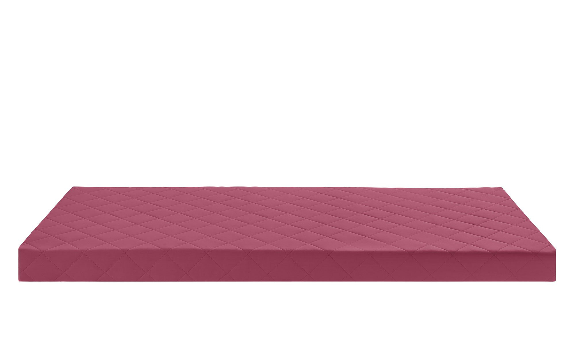 Ein Brombeer-farbiger Bezug aus 100 % Baumwolle, gesteppt und mit Vlies unterfüttert, schützt den Kern und sorgt für zusätzlichen Komfort. Die integrierten Reißverschlüsse an den Quer- und Längsseiten gestalten das Abnehmen ganz einfach, außerdem ist eine Wäsche bei 30 °C möglich.