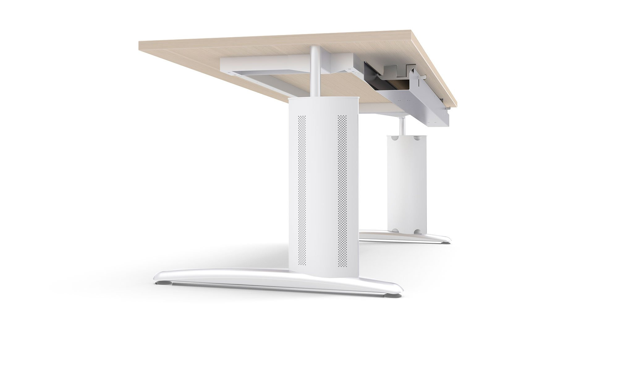 - Beim elektrisch höhenverstellbaren Modell Montage direkt unter der Tischplatte