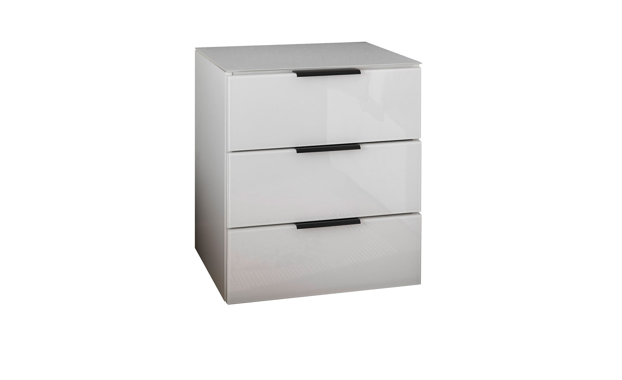 Der Artikel misst ca. 46 x 53 x 40 cm. Er überzeugt durch ein schlichtes Design in Weiß, das sich sowohl innen als auch außen findet. Ein ansprechender Materialmix aus melaminbeschichtetem Holzwerkstoff am Korpus und einer zusätzlichen weißen Deckplatte aus Glas an der Front überzeugt auf ganzer Linie.