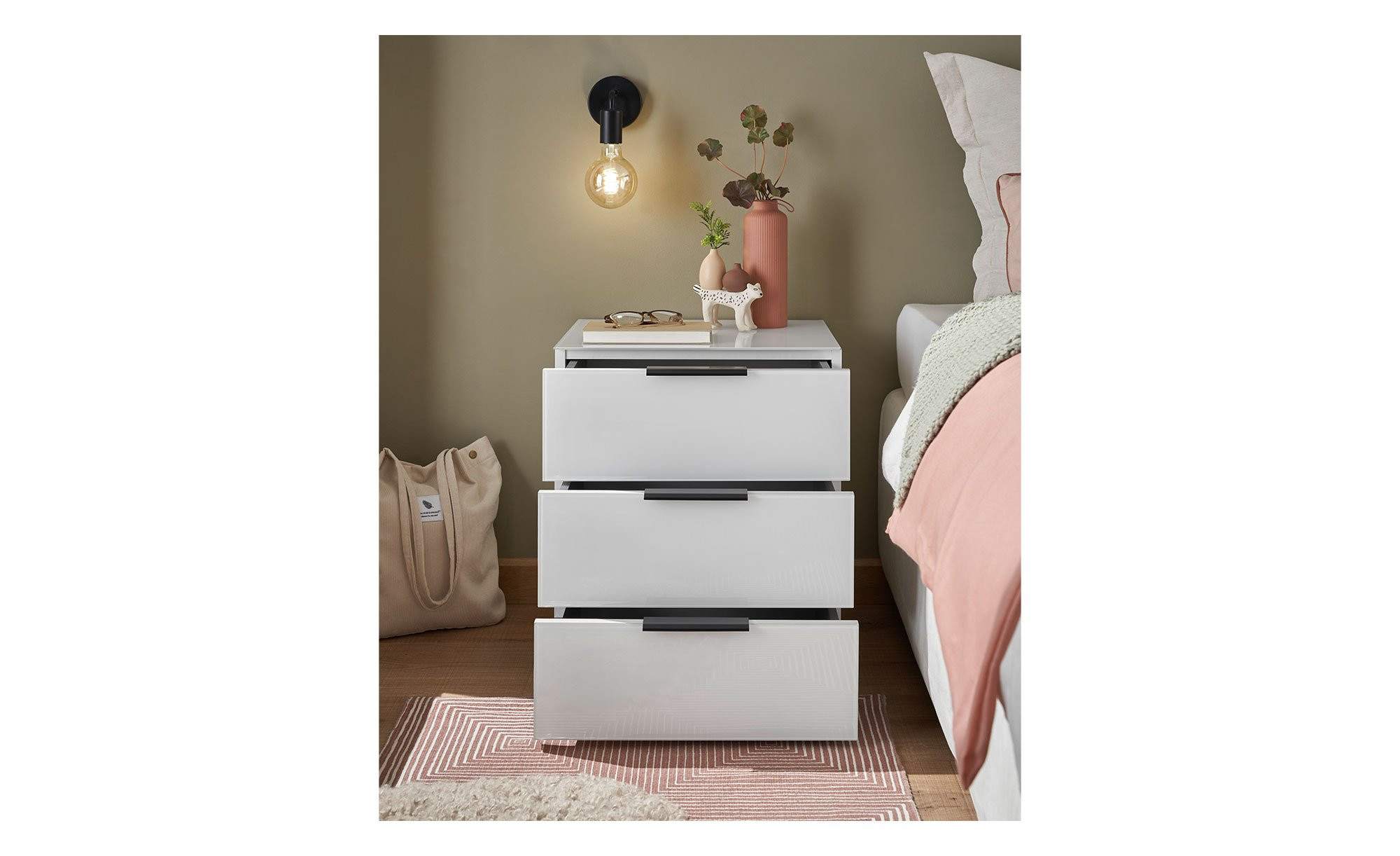 Vom Lieblingsbuch bis zur Nachttischlampe findet auf dem Nachttisch Patty alles seinen Platz!