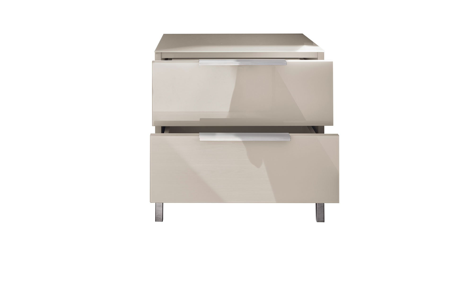 Neben dem modernen Design punktet das Schränkchen auch durch sein Stauraum-Angebot. Dafür erwarten Sie zwei Schubkästen.