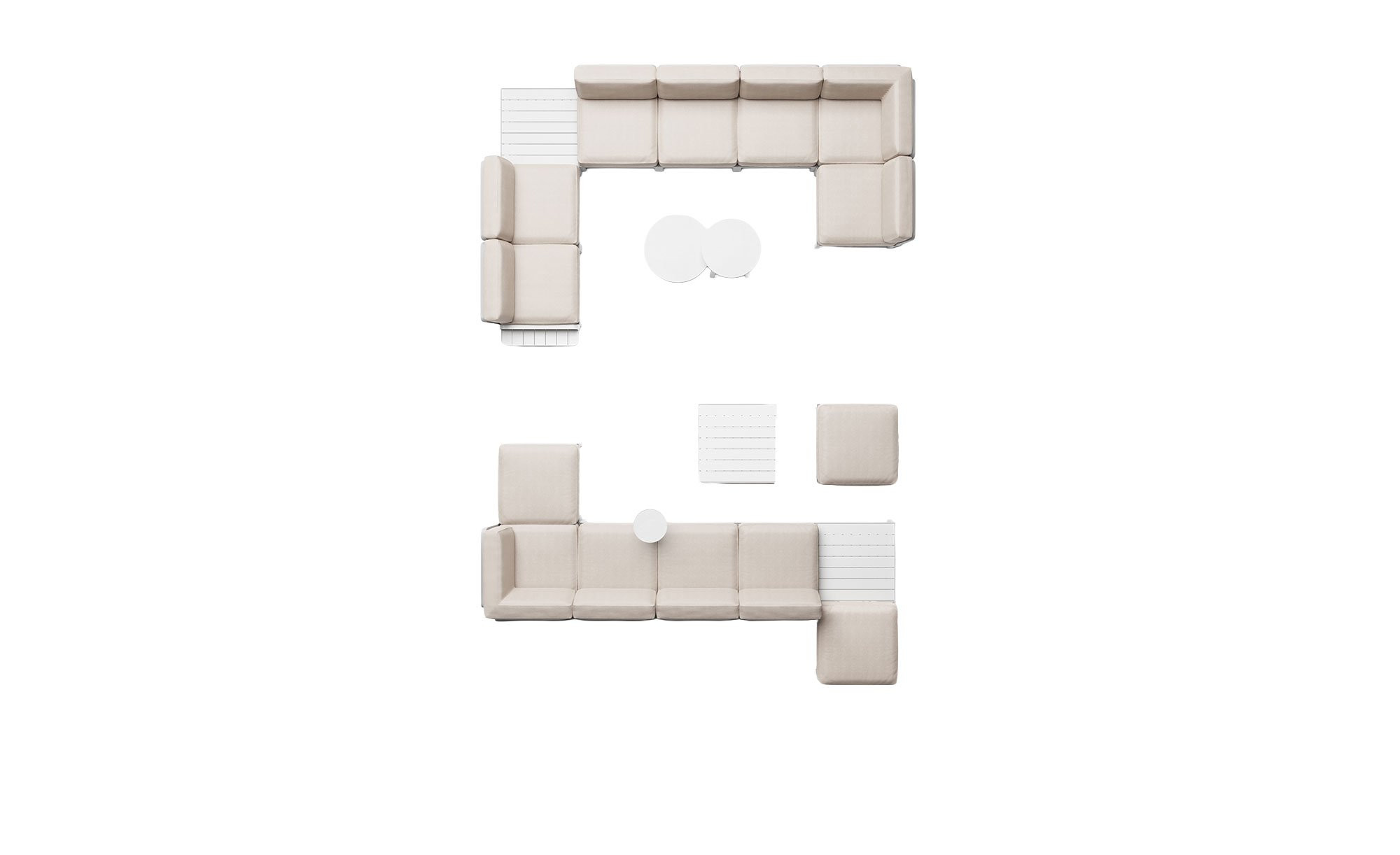 Für ein bequemes Sitzen sorgen die mitgelieferten Kissen mit einer ca. 19 cm starken Polyurethanschaum-Polsterung. Ihr widerstandsfähiger Sunbrella-Bezug in der Farbe Perla (Beige) lässt sich bei Bedarf abziehen und ist bei 30 Grad waschbar.