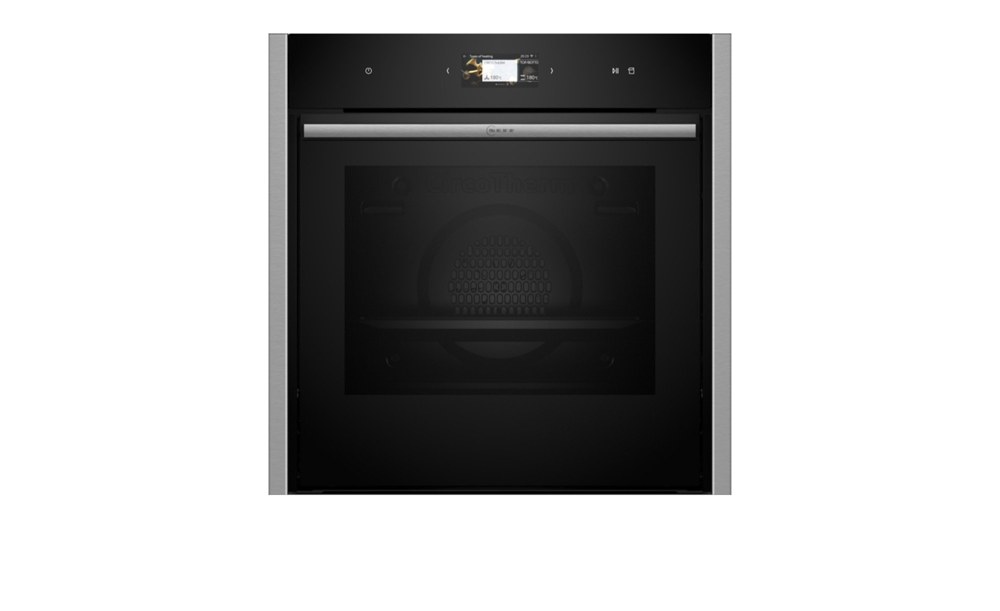 Der NEFF Dampfbackofen ist ca. 59,6 x 59,5 x 54,8 cm groß und besteht aus Edelstahl sowie schwarzem Glas. Seine Tür lässt sich per Slide & Hide® platzsparend öffnen, sodass ein ungehinderter Zugang entsteht.