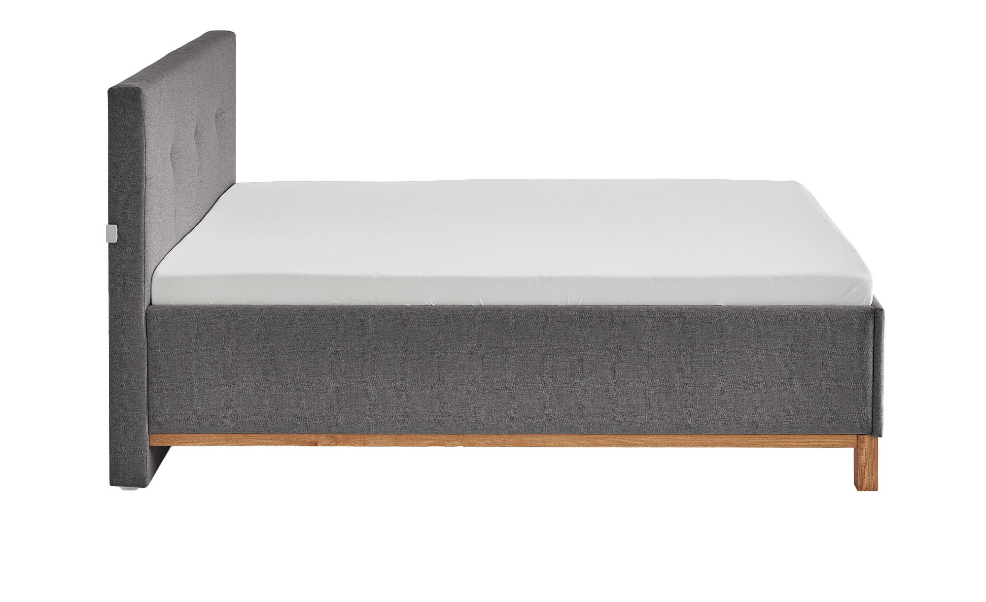 Mit seiner zeitlosen Optik fügt sich das ca. 146 x 112 x 213 cm umfassende Möbelstück in beinahe jedem Schlafzimmer perfekt ein. Es ist mit einem anthrazitfarbigen Stoff aus 100 % Polyester bezogen und verfügt zusätzlich über ein gestepptes Kopfteil mit USB-Anschluss. Füße aus Eichenholz runden das einladende Erscheinungsbild ab.