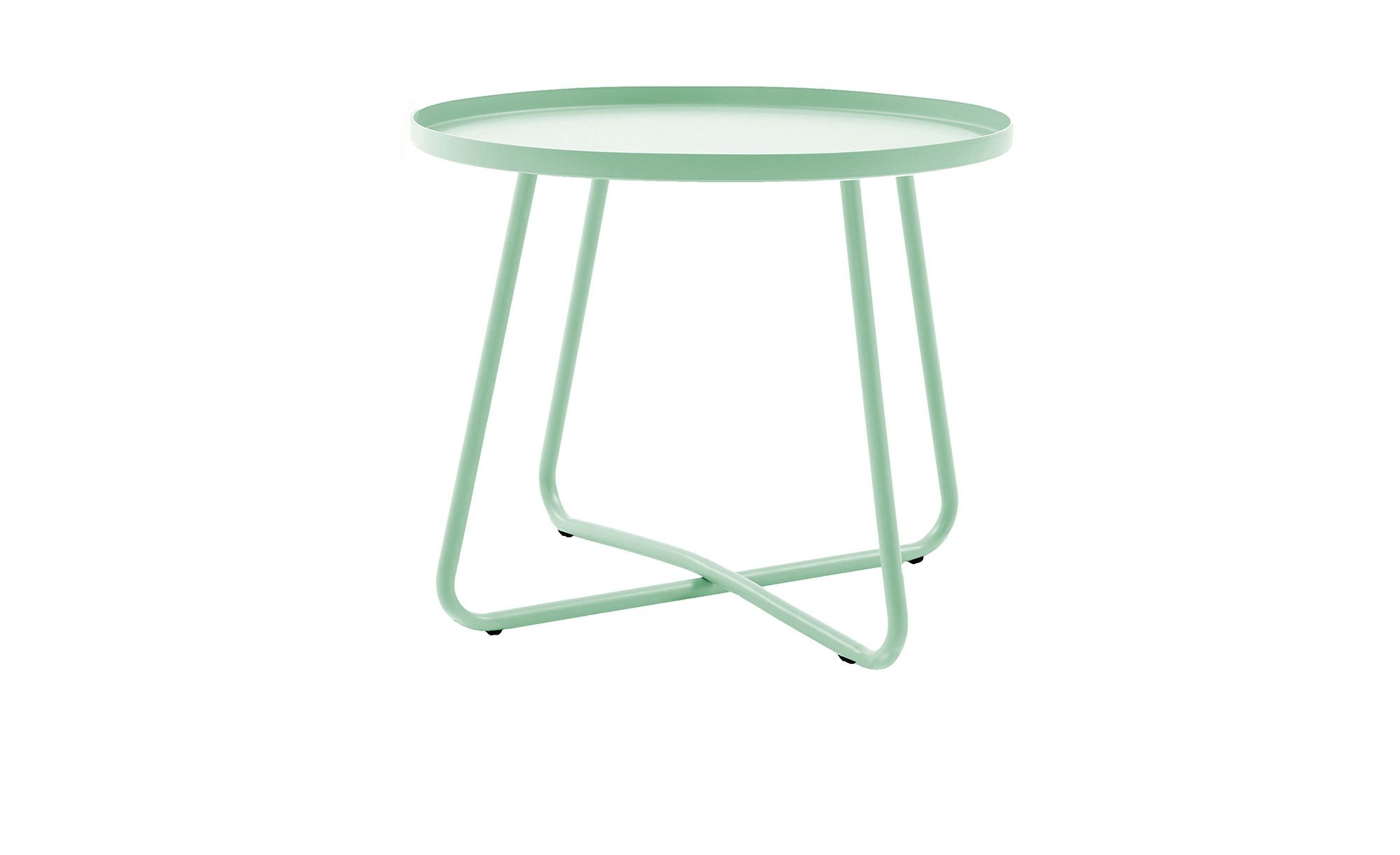 Der Beistelltisch Avila misst ca. 45 cm im Durchmesser. Sowohl seine runde Tischplatte als auch das pulverbeschichtete Gestell bestehen aus Stahl in knalligem Grün. Die einzelnen Stahlrohre sind ca. 16 x 1,0 mm stark und gewährleisten Stabilität und Langlebigkeit.