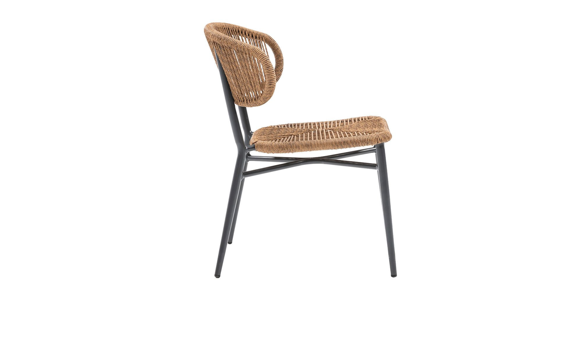Der outdoor Gartenstuhl Adrano misst ca. 55 x 76 x 60 cm. Er verfügt über ein 4-Fuß-Gestell aus pulverbeschichtetem Aluminium im Farbton Anthrazit. Darüber hinaus erwartet Sie an der Rückenlehne und Sitzfläche jeweils ein Seil-Geflecht aus PE-Gewebe. Dieses hat einen Durchmesser von ca. 5 mm und ist in einer naturnahen Farbe gehalten.