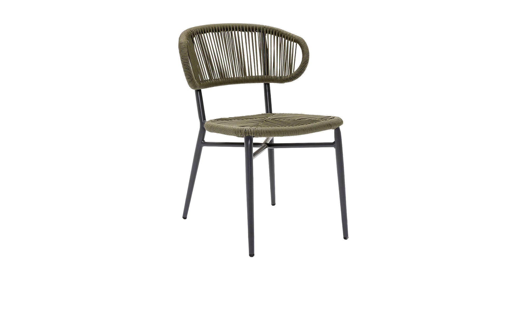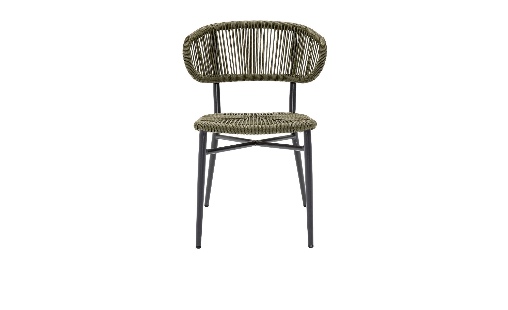 Das ca. 55 x 76 x 60 cm große Gartenmöbelstück von outdoor verfügt über ein robustes Aluminiumgestell mit vier Füßen und Pulverbeschichtung in Anthrazit. Sitzfläche und Rücken sind hingegen mit einem PE-Seilgeflecht von ca. 5 mm Durchmesser versehen, das in Salbeigrün gehalten ist.