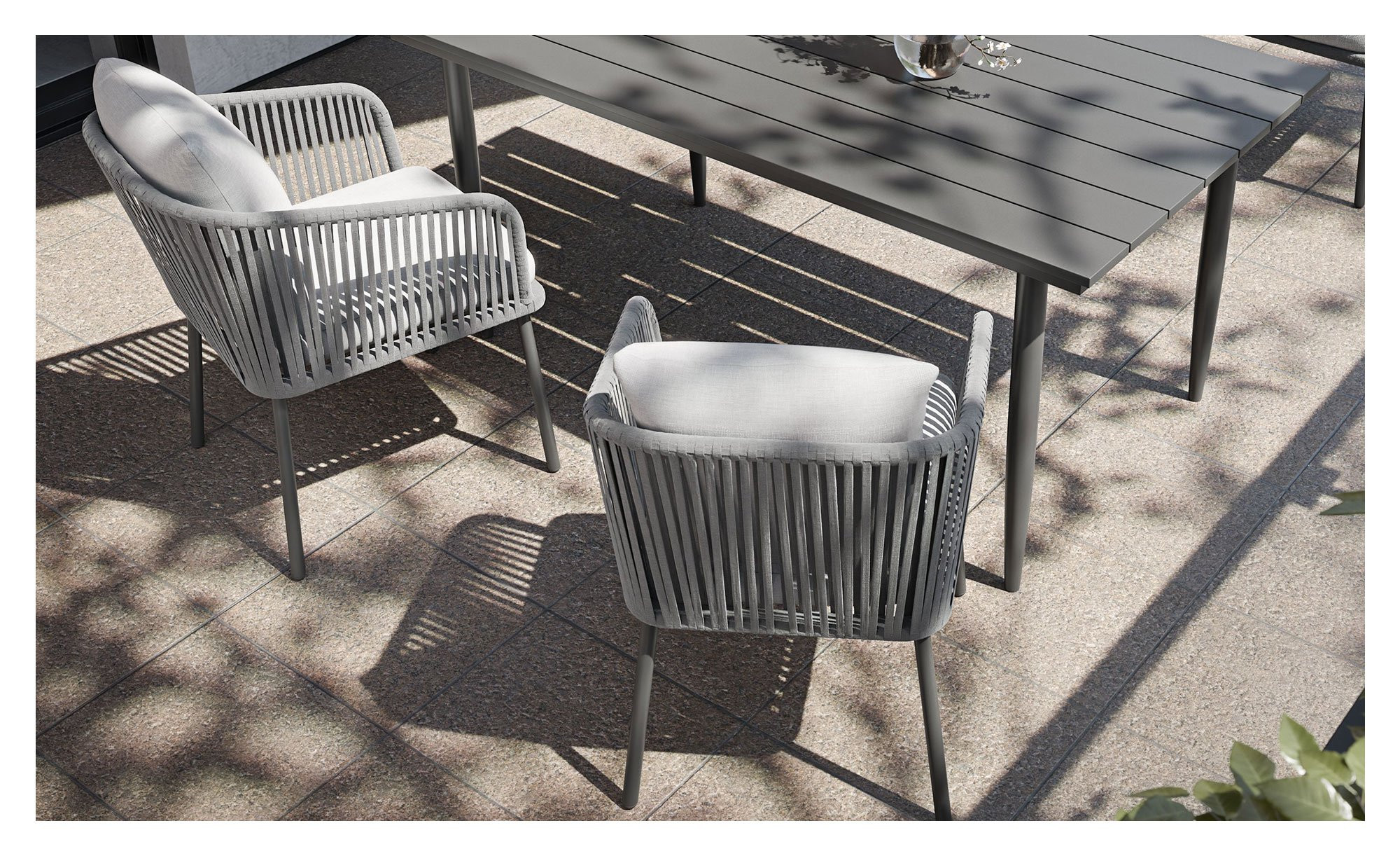 Sie können den Gartenstuhl Este von outdoor vielseitig kombinieren. Dank seiner UV- und Wetterbeständigkeit ist er zudem ausgesprochen unempfindlich gegenüber äußeren Einflüssen.