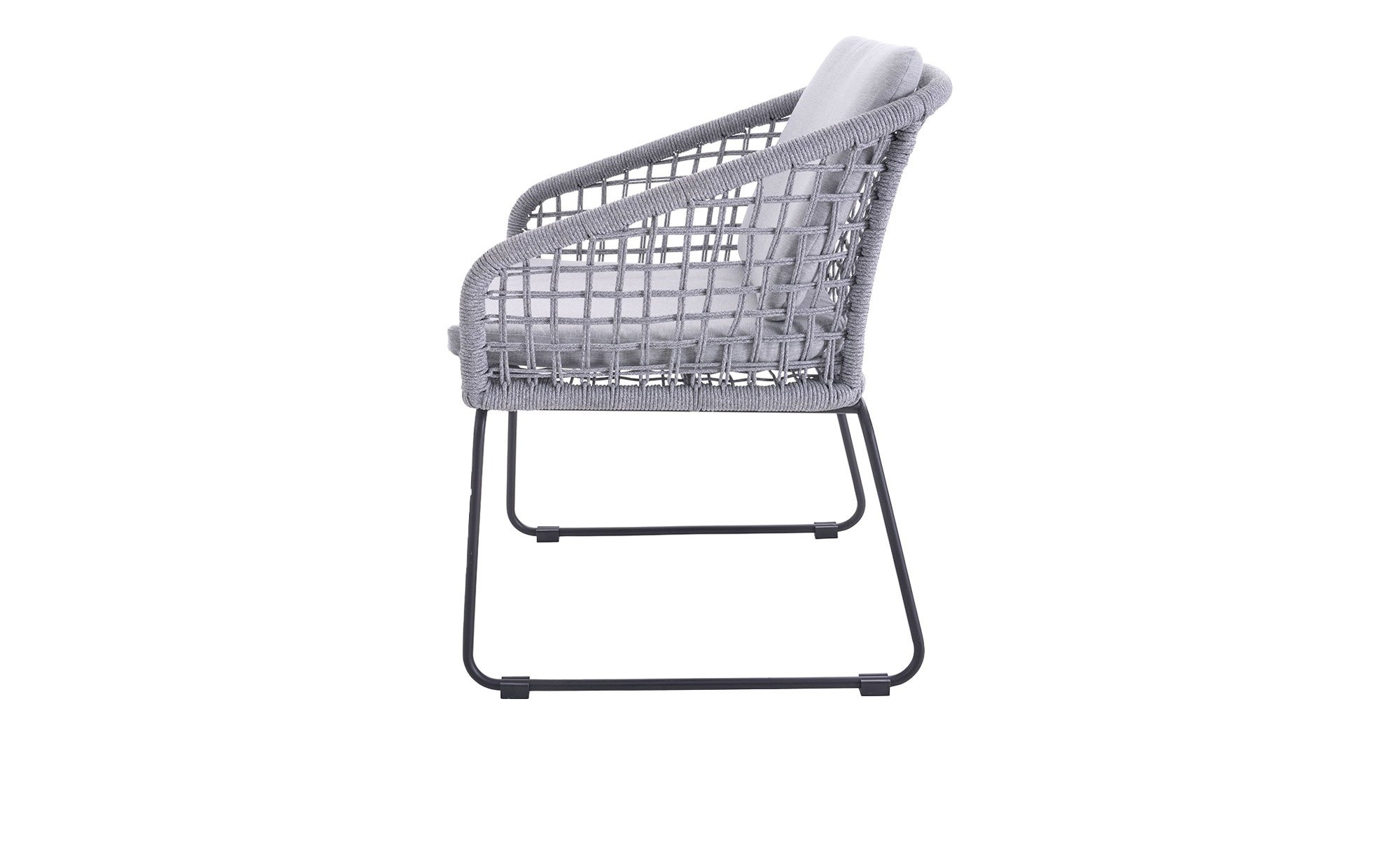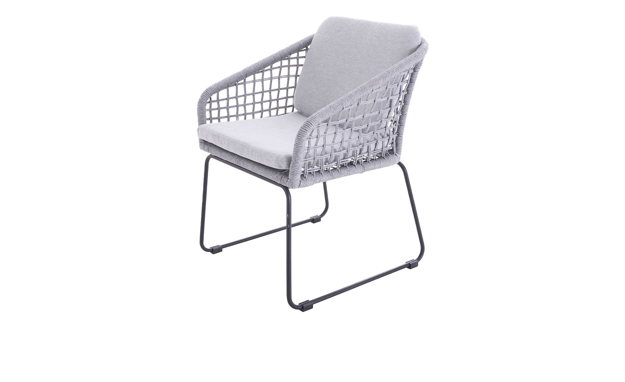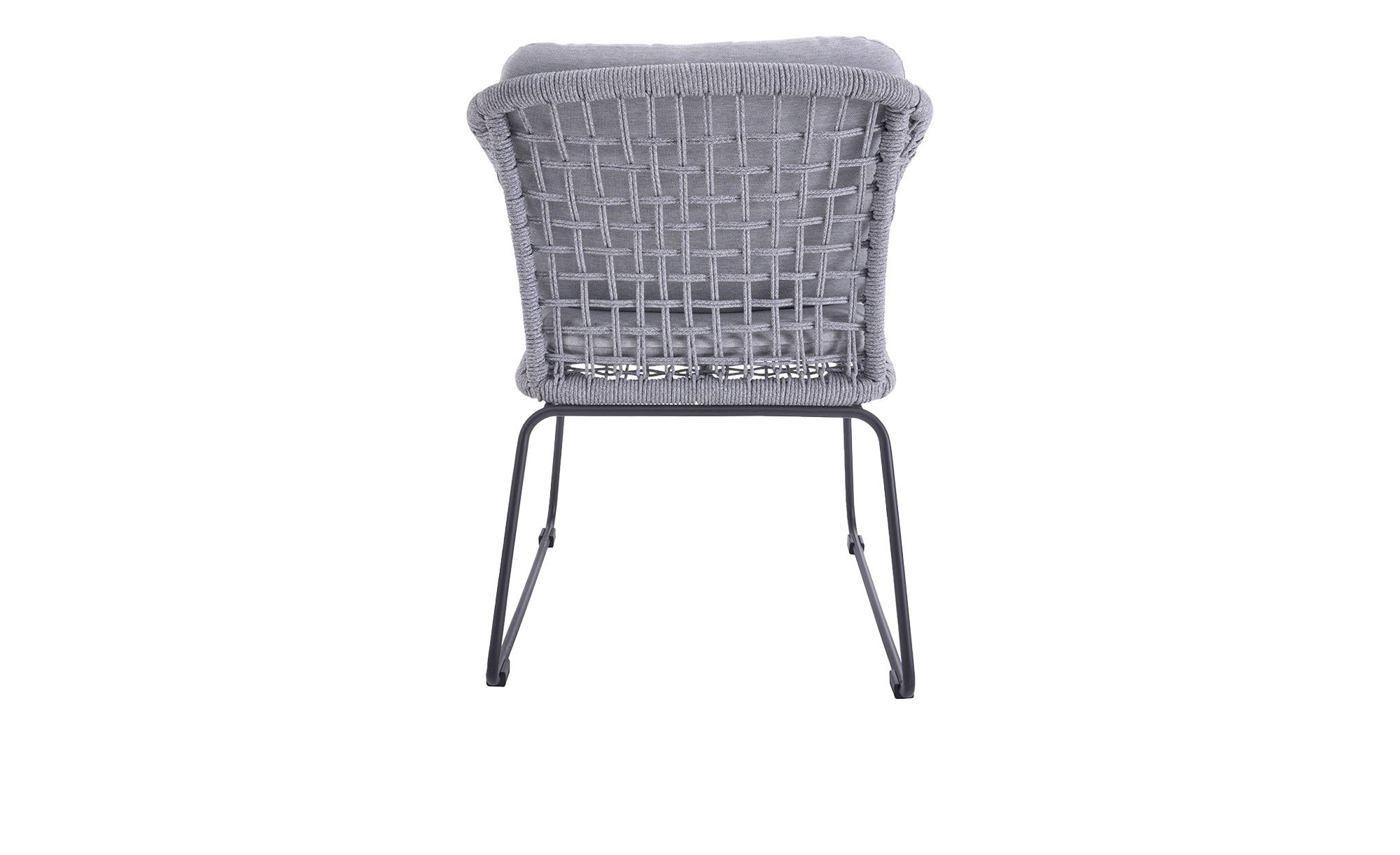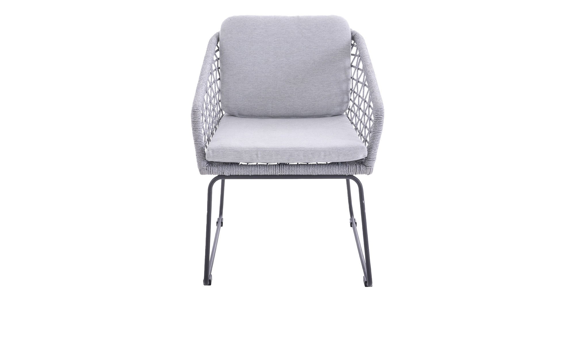 Ein stabiles Gestell aus anthrazitfarbigem Stahl mit stilvollen Kufenfüßen bildet die Basis des ca. 59 x 82 x 66 cm großen Gartenstuhls Rovigo der Marke outdoor. Am Sitzbereich erwartet Sie zudem ein hellgraues Seilgeflecht aus Polyester, das sowohl optisch als auch in Sachen Gemütlichkeit vollends zu überzeugen weiß.