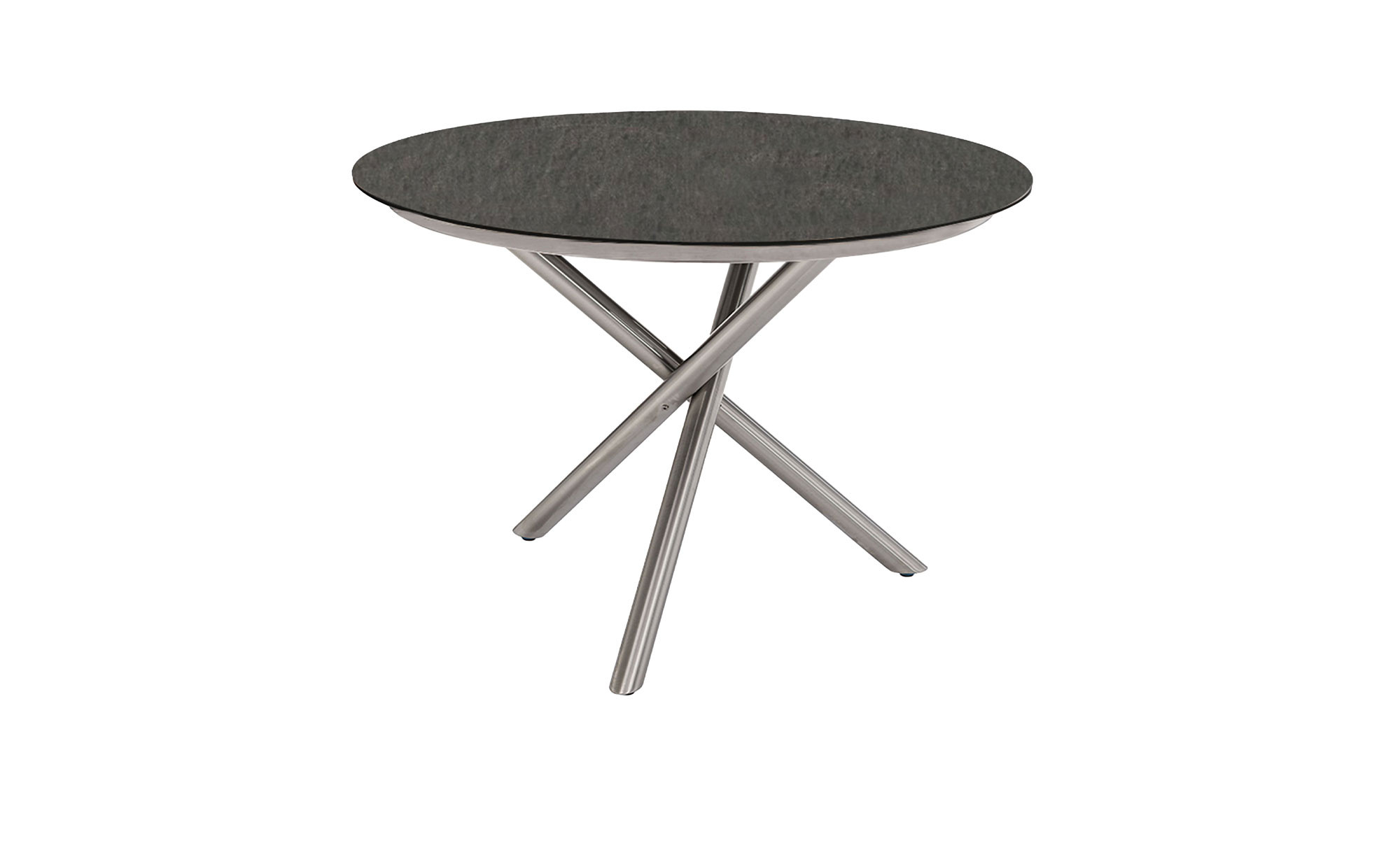 Der Gartentisch Alina I ist eine ebenso stilvolle wie praktische Lösung für Ihre Outdoor-Sitzecke. Sein Gestell ist aus gebürstetem Edelstahl gefertigt und dank der drei ineinander verschlungenen Füße ein echter Hingucker.