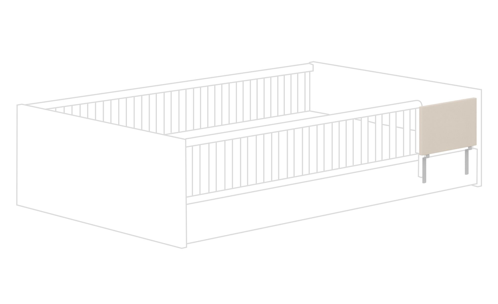 Mit Maßen von ca. 41 x 25 x 2 cm ist der Schutz unauffällig, aber umso wirkungsvoller. Er wurde aus robustem Holzwerkstoff gefertigt und ist in einem stilvollen Cashmere-Beige gehalten. Somit fügt er sich nahtlos ins Design des Bettes ein.
