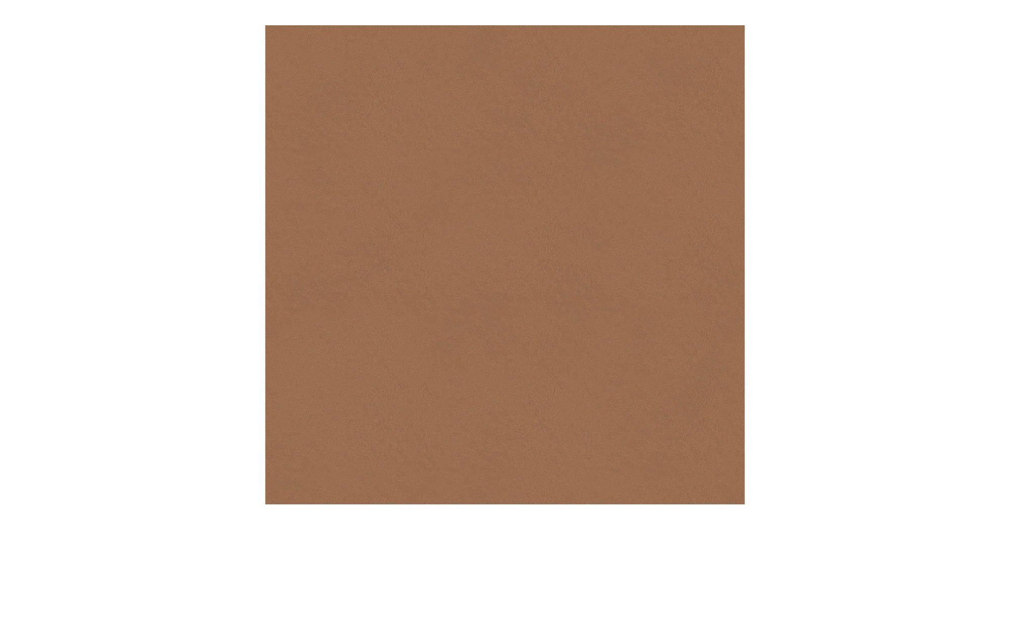 Der braune Bezug des ca. 76 x 113 x 89 cm großen Möbelstücks besteht aus echtem Leder und umschließt es inklusive des Rückens. Außerdem wurde ein pulverbeschichteter Metallfuß integriert, der mit seinem edlen Anthrazit perfekt ins Bild passt.