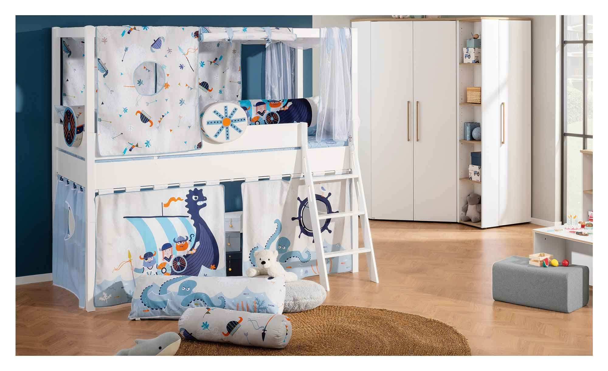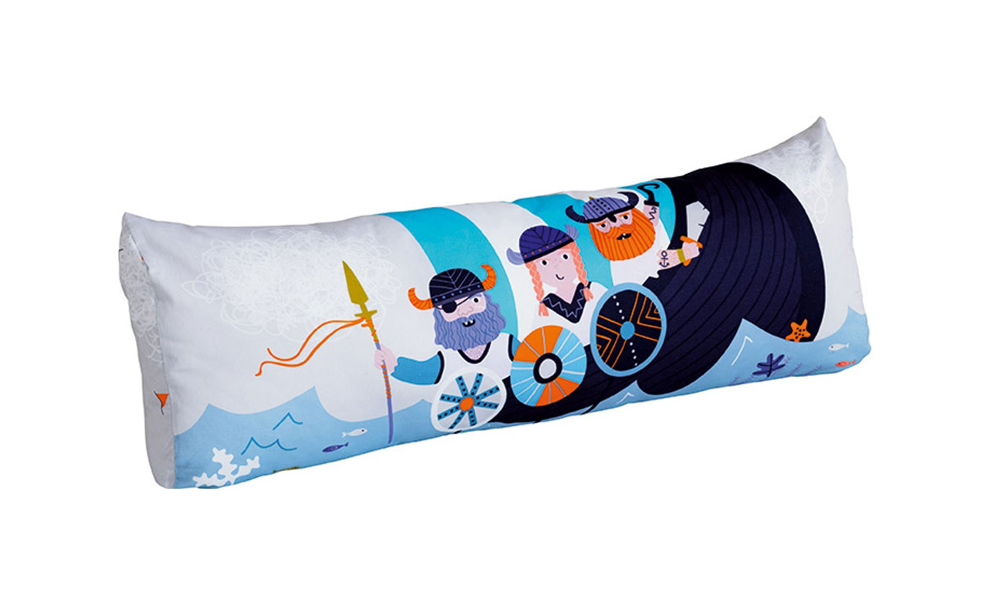 Das gemütliche Rückenkissen mit dem Motiv Wikinger bringt eine spannende Szene auf dem Meer mitten ins Kinderzimmer!