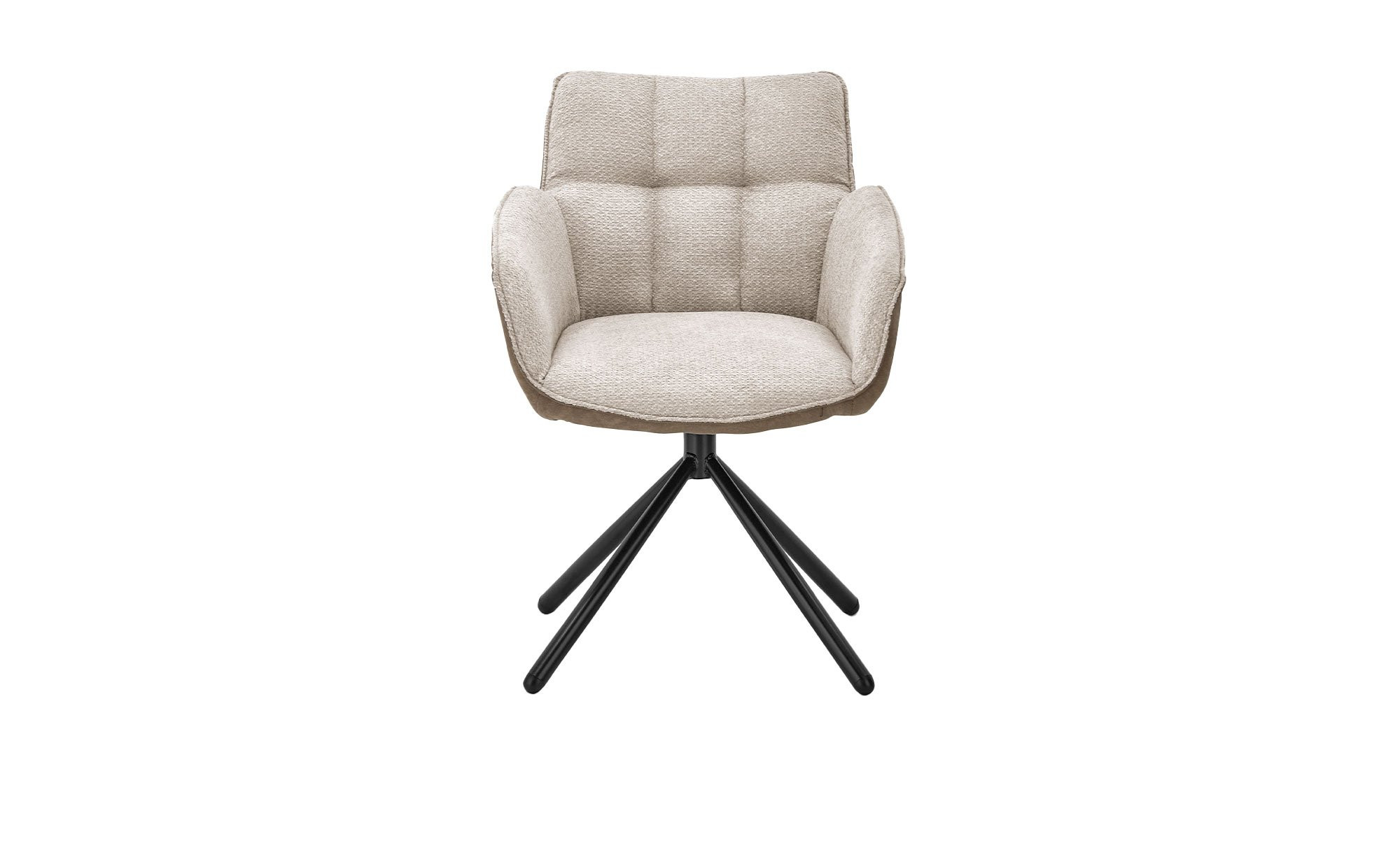 Bezogen mit einem weichen Chenille-Stoff aus 100 % Polyester, lädt die Sitzschale des ca. 60 x 84 x 65 cm großen Möbelstücks unmittelbar zum Platznehmen ein. Das Material ist in der Farbe Taupe gehalten, zusätzlich gibt es eine Absetzung aus Mikrofaser im gleichen Ton. Auch das schwarze Stativgestell aus Eisen fügt sich ideal ins Gesamtbild.