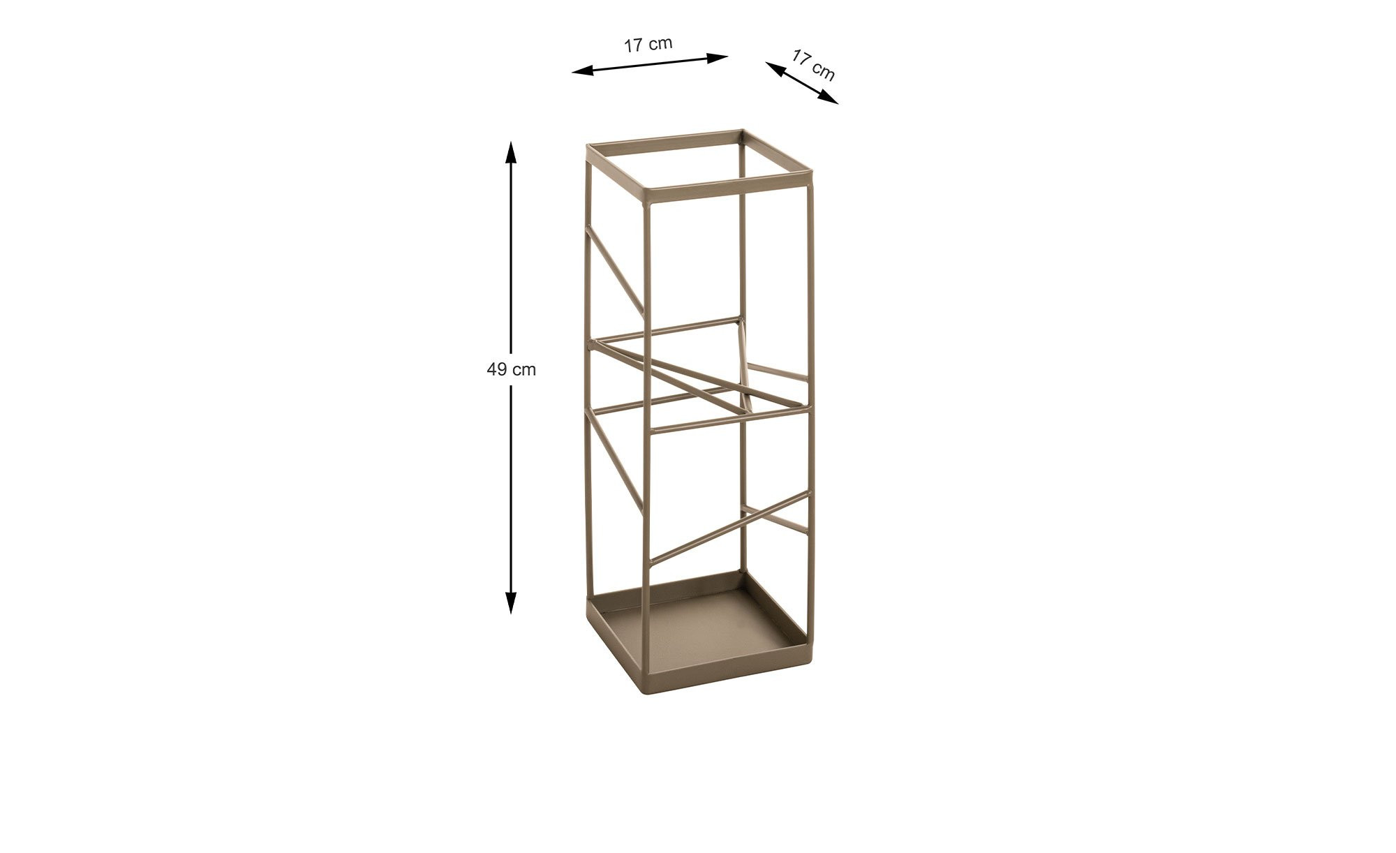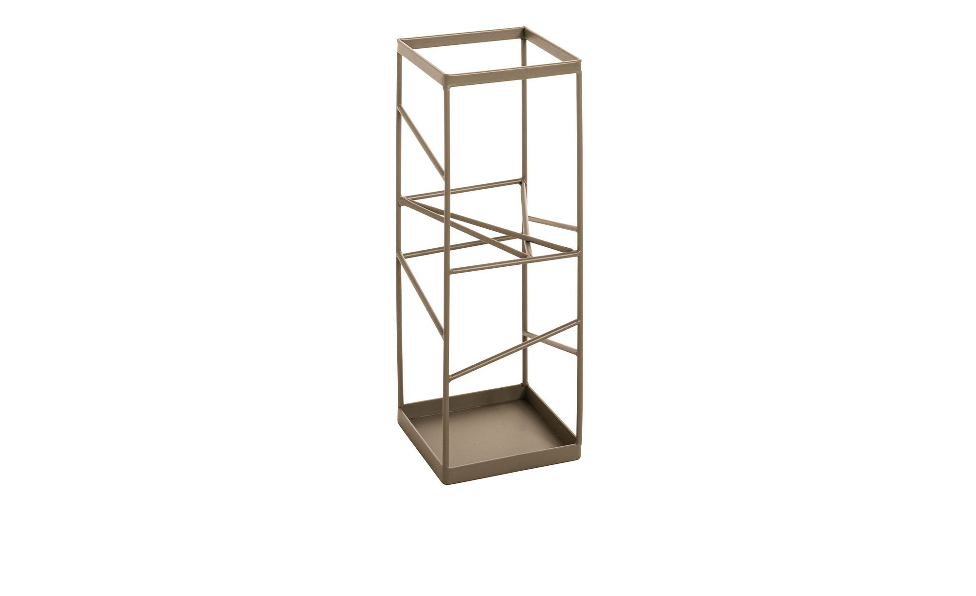 Der ca. 17 x 49 x 17 cm große Ständer ist aus grün lackiertem Stahlrohr gefertigt, was ihn sowohl optisch ansprechend als auch stabil macht. Zwei versetzt positionierte Streben im Inneren sorgen dafür, dass Schirme geordnet und voneinander getrennt abgestellt werden können.