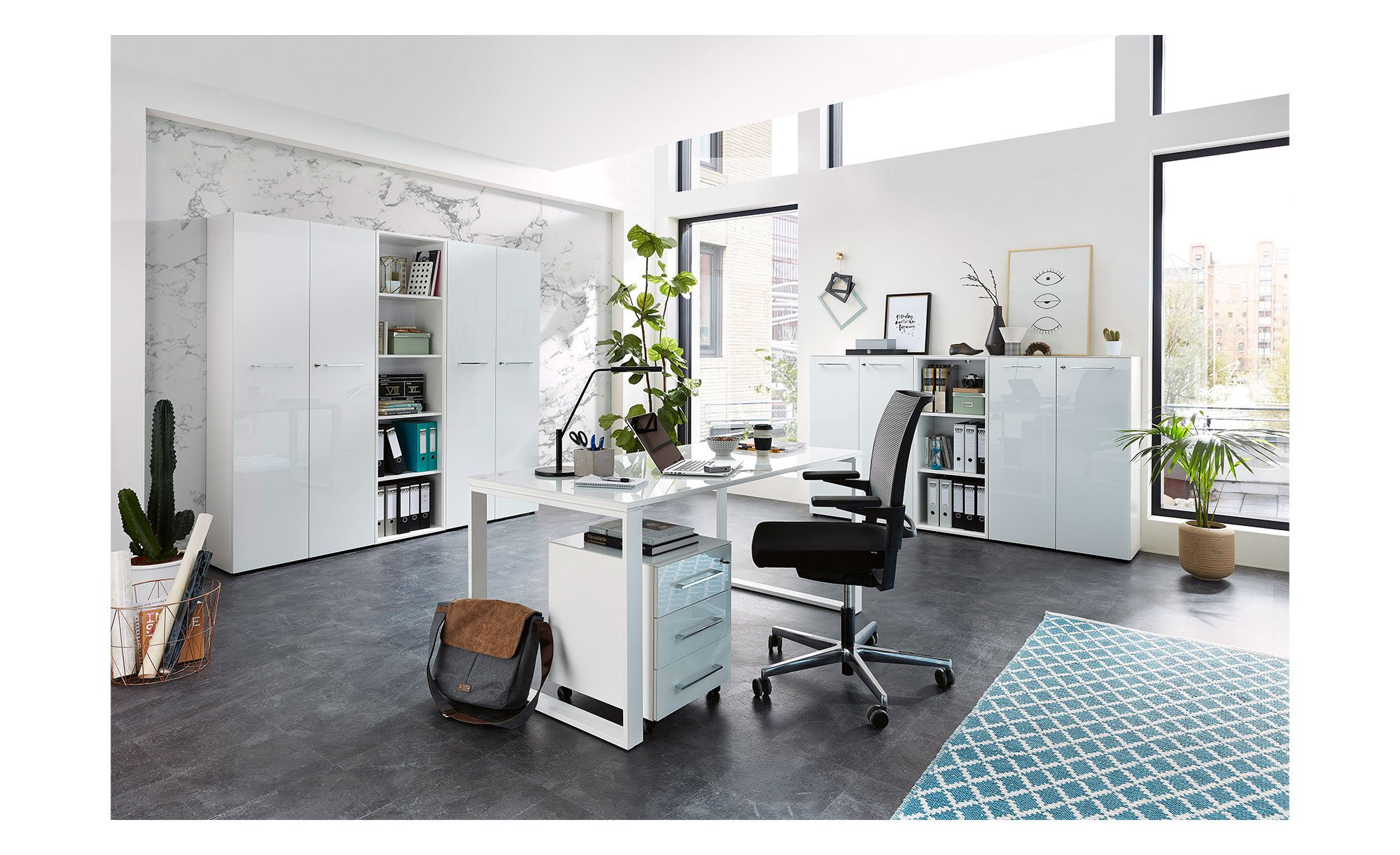 Zusätzlich dürfen Sie sich auf eine mit bis zu ca. 30 kg belastbare Glasauflage in Weiß freuen. Dabei handelt es sich um Einscheibensicherheitsglas mit hoher Widerstandskraft, das für ein wertiges Flair sorgt.