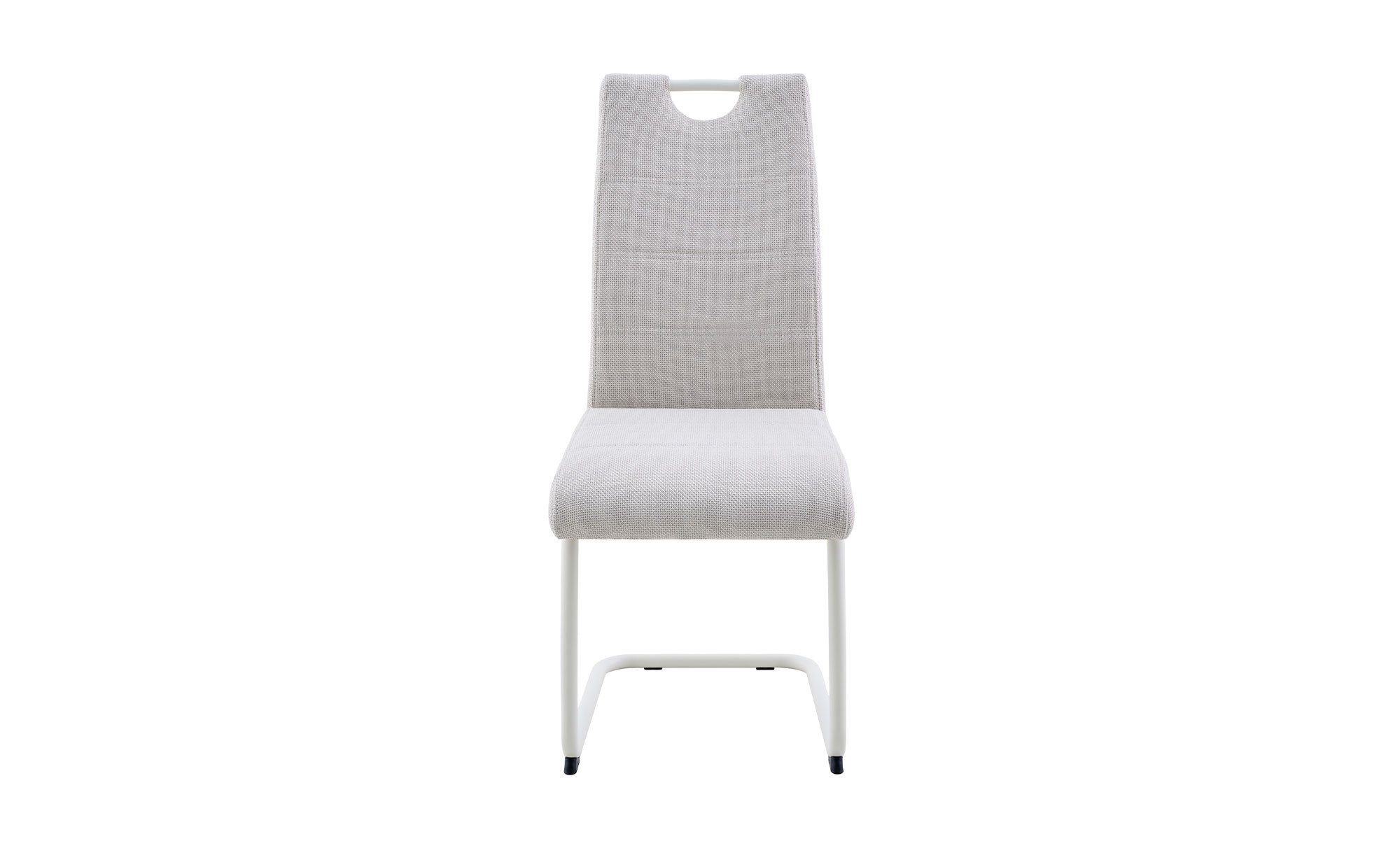 Bezogen ist der ca. 43 x 99 x 60 cm große Stuhl mit einem Mikrofaser-Webstoff aus 100 % Polyester in Beige-Creme. Das pulverbeschichtete Rundrohr-Gestell in Creme setzt einen dezenten Akzent und rundet das moderne, wohnliche Gesamtbild ab.