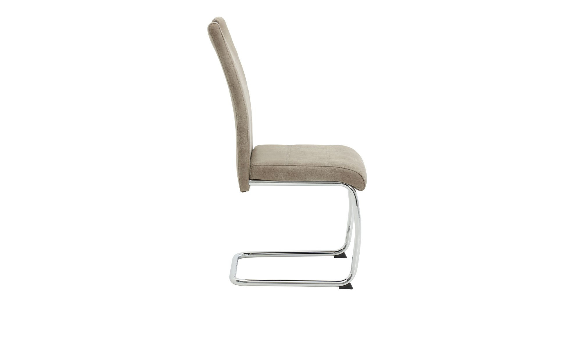 Der Schwinger begeistert mit einem beigen Mikrofaser-Bezug in Vintage-Optik. Dieser besteht aus 100 % Polyester und ist am Sitz und Rücken mit stylishen Doppelnähten versehen. Außerdem gibt es am Rücken einen praktischen Griff, der optisch perfekt zum Metallgestell aus verchromtem Rundrohr passt.
