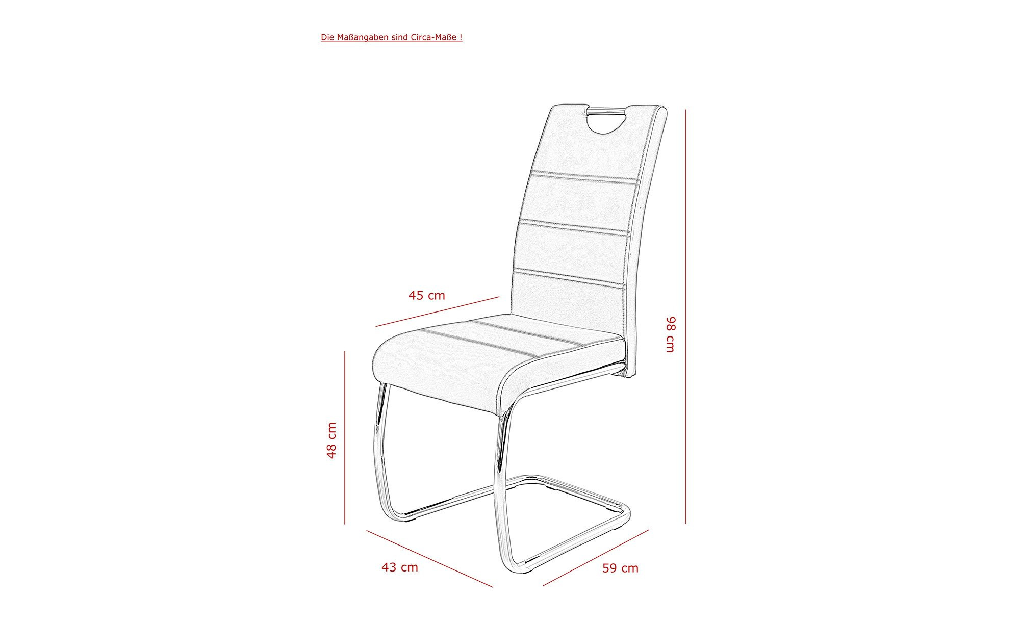 Sie können den ca. 43 x 98 x 59 cm großen Stuhl mit max. 120 kg belasten.