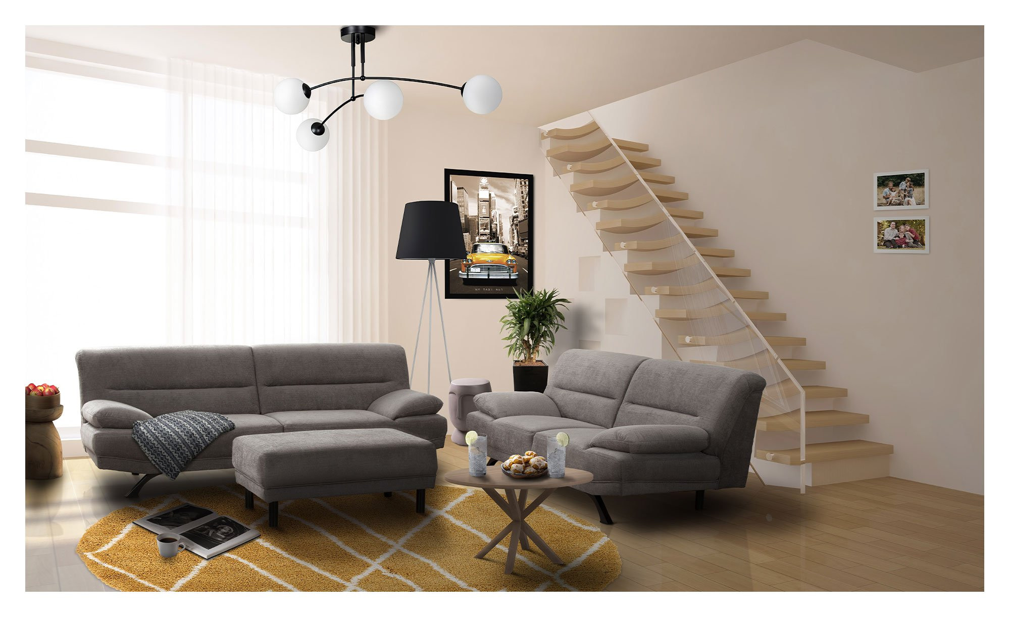 Dank seines silbergrauen Stoffbezugs aus 100 % Polyester präsentiert sich das ca. 191 x 83 x 94 cm große Möbel als absoluter Eyecatcher. Auch der Rücken ist echt bezogen, sodass sich Ihnen verschiedene Stellmöglichkeiten eröffnen. Die schwarzen Metallfüße fügen sich mit ca. 15 cm Höhe ebenfalls ideal ins Bild.