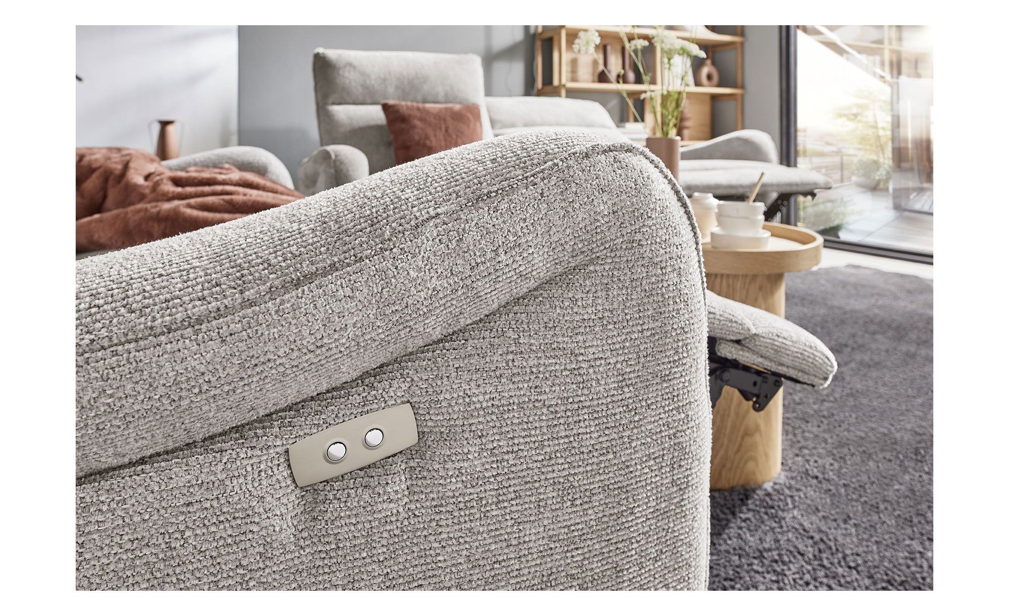 Sitz und Rücken des Möbelstücks sind mit einer weichen Schaumstoffpolsterung versehen und bieten hierdurch einen hohen Komfort. Darüber hinaus verfügt das Sofa 3-Sitzer Lino über eine elektrische Relaxfunktion sowie praktische USB-A- und -C-Stecker.