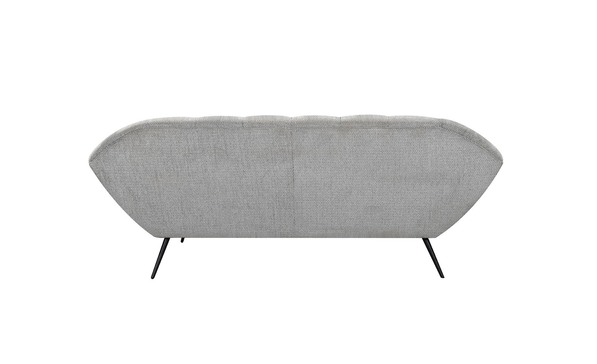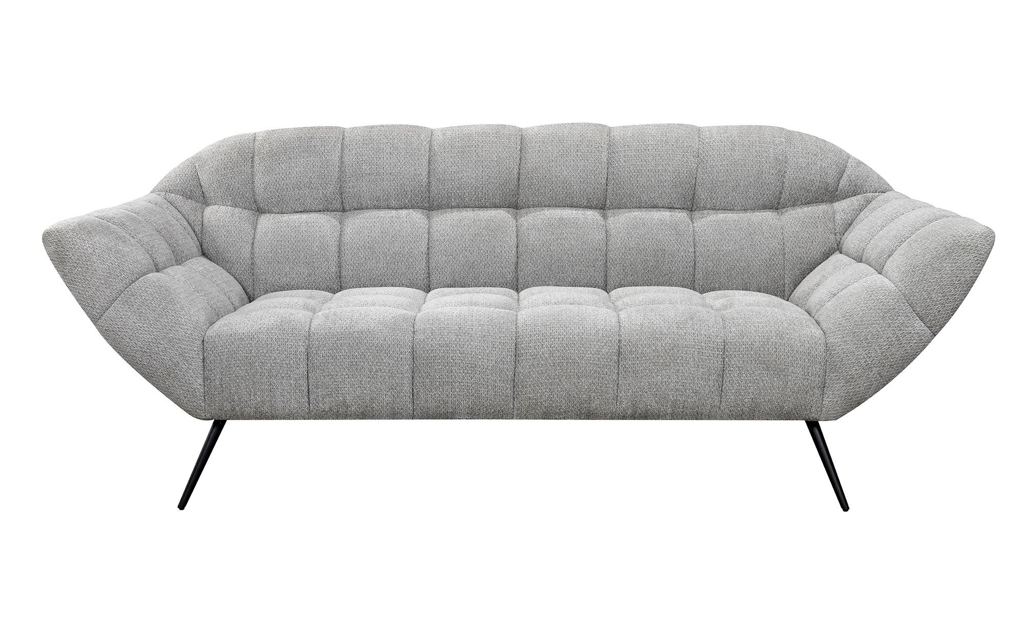 Dem ca. 221 x 85 x 85 cm großen Möbelstück ist sein besonderer Komfort auf den ersten Blick anzusehen. Ein weicher Stoff-Bezug aus 100 % Polyester in Grau umschließt den Artikel inklusive seines Rückens und sorgt somit für zahlreiche Stellmöglichkeiten. Die ca. 20 cm hohen Füße aus schwarzem Stahl runden das Bild gemeinsam mit einer modernen Steppung ideal ab.