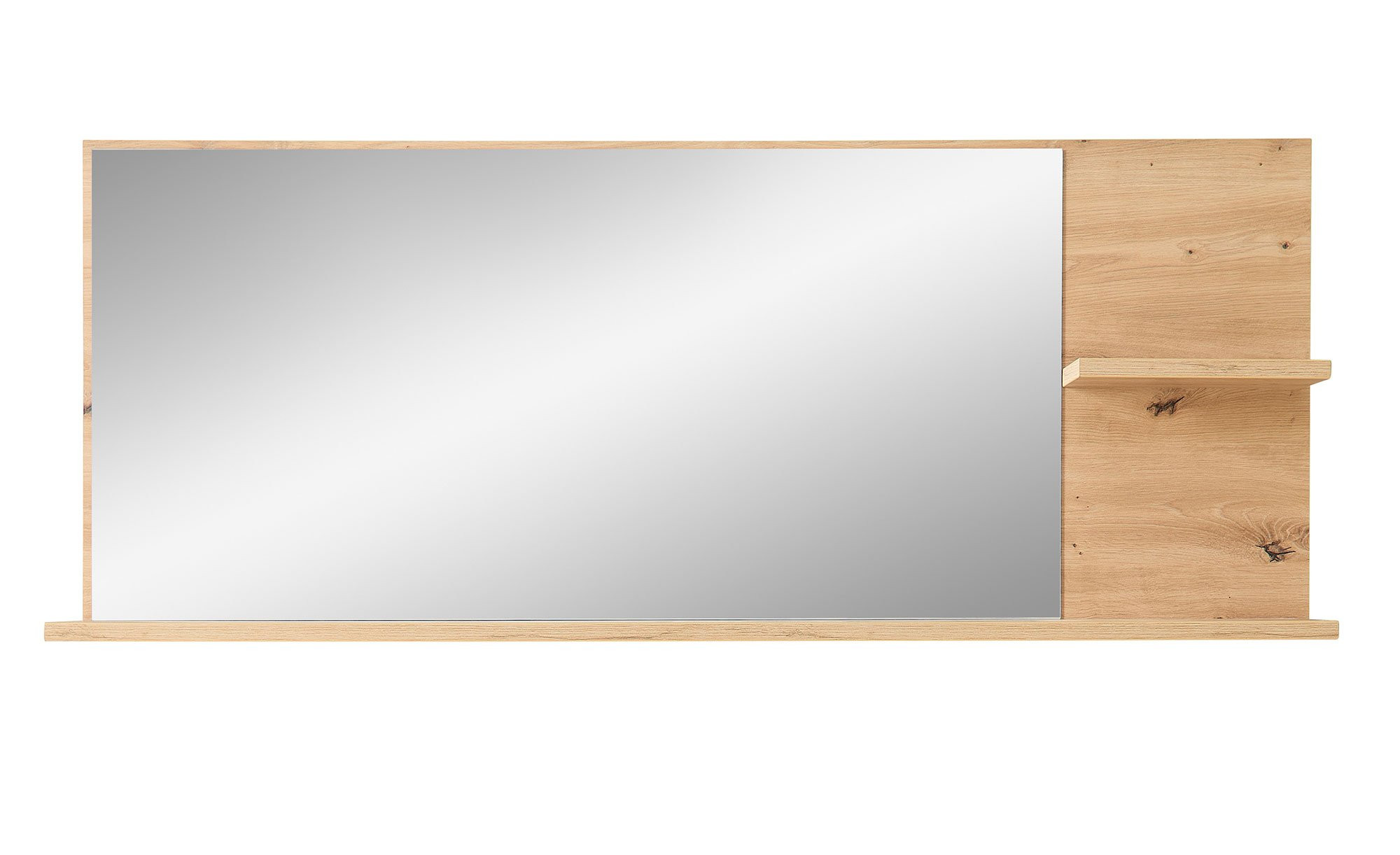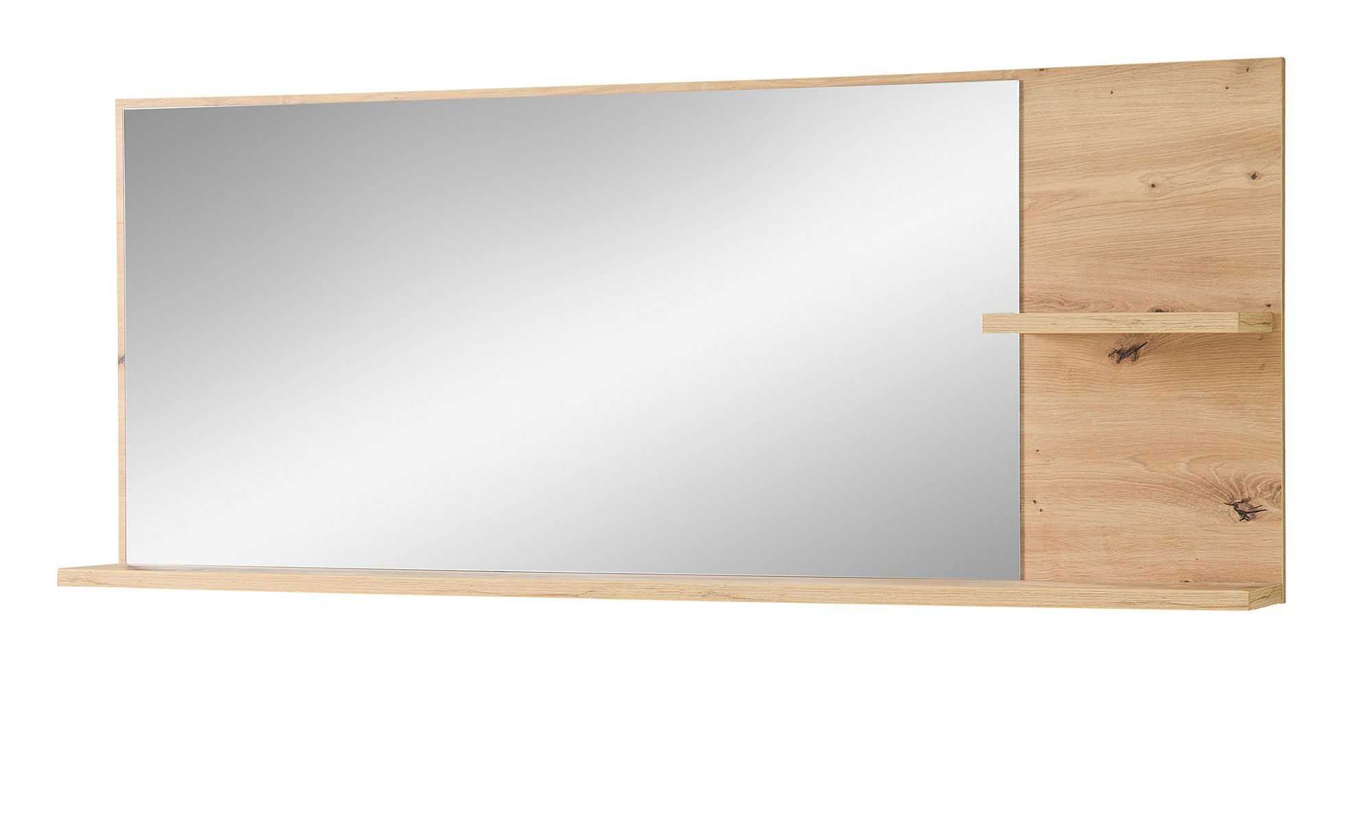 Der ca. 148 x 60 x 17 cm große Artikel kombiniert eine verspiegelte Front mit einem Rahmen aus Holzwerkstoff in wohnlichem Artisan Eiche-Dekor. Zwei kleine Ablageflächen bieten zusätzlichen Stauraum für Ihre täglichen Begleiter und machen den Spiegel zu einem durchdachten Möbelstück für den Alltag.
