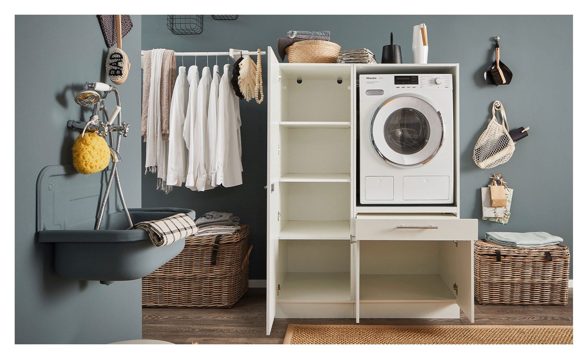 Mit dem Stauraumschrank Laundry sorgen Sie auf zugleich schlichte und stilvolle Weise für mehr Platz in Ihrem Badezimmer.