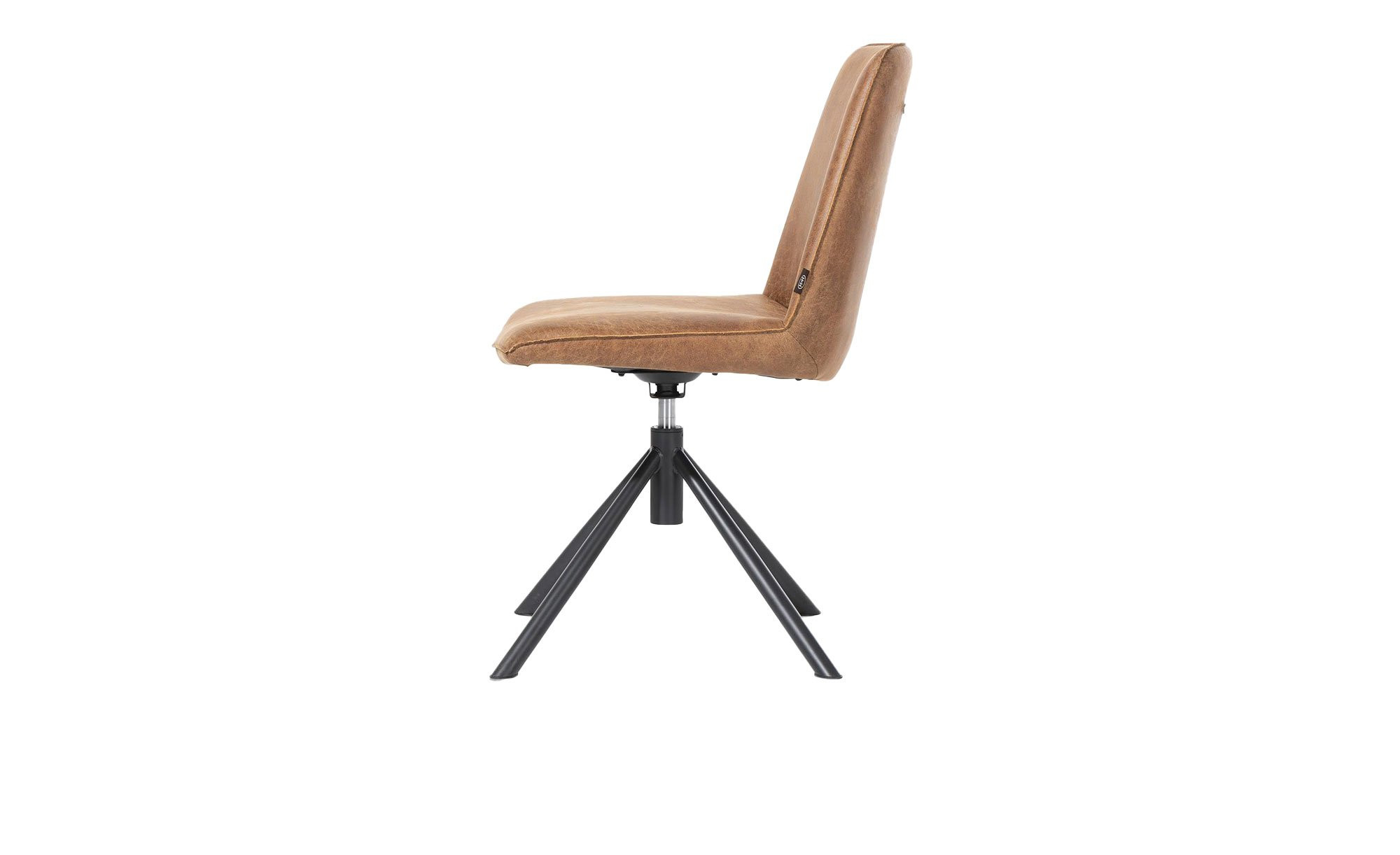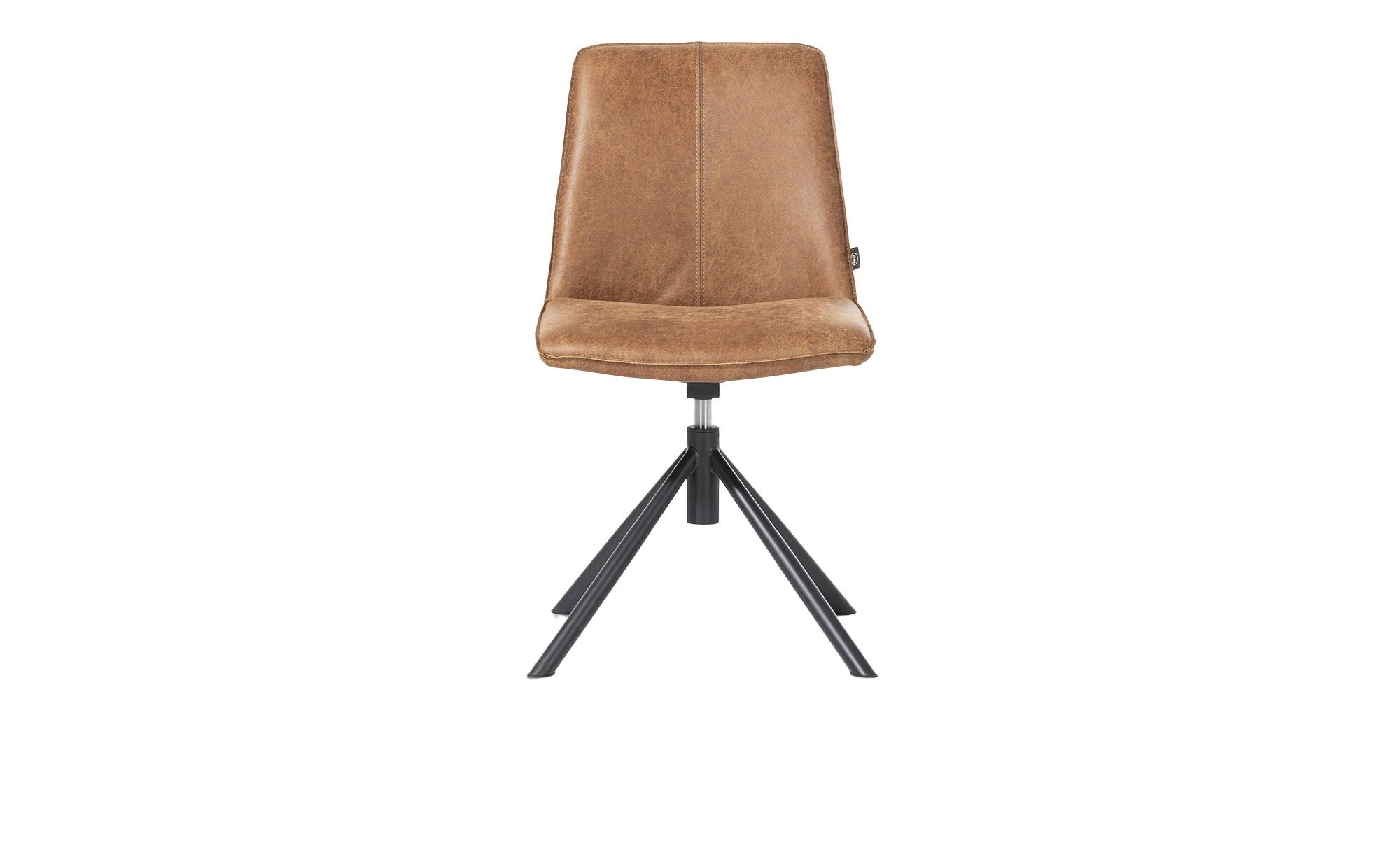 Der Stuhl Brody überzeugt durch sein modernes Erscheinungsbild und hohen Sitzkomfort. Mit Maßen von ca. 49 x 91 x 64 cm ist der Sitz mit Lederfasern und Mikrofaser in Cognac bezogen. Ein praktischer Griff und das stabile Stativgestell aus schwarzem Stahl unterstreichen die ansprechende Optik.