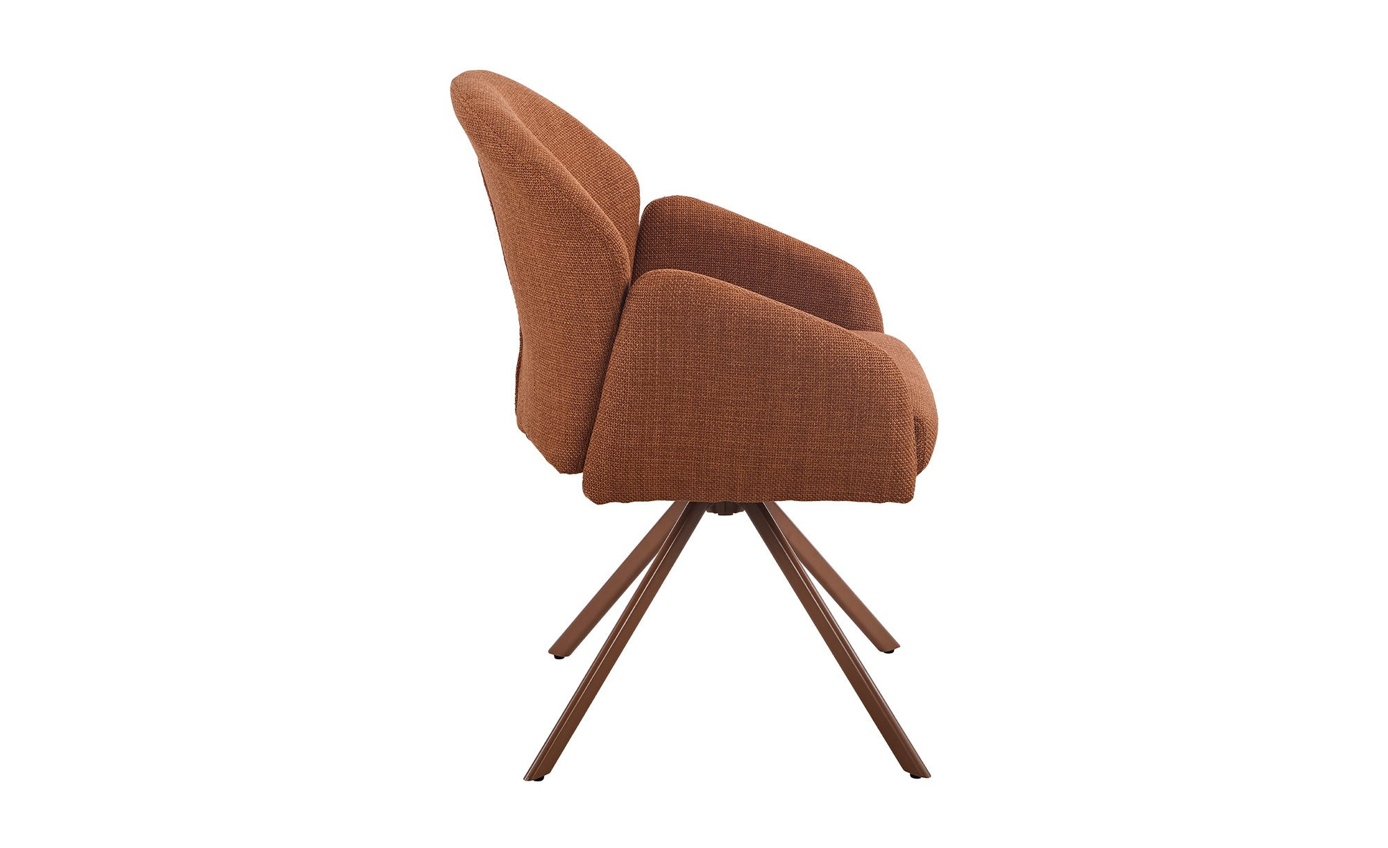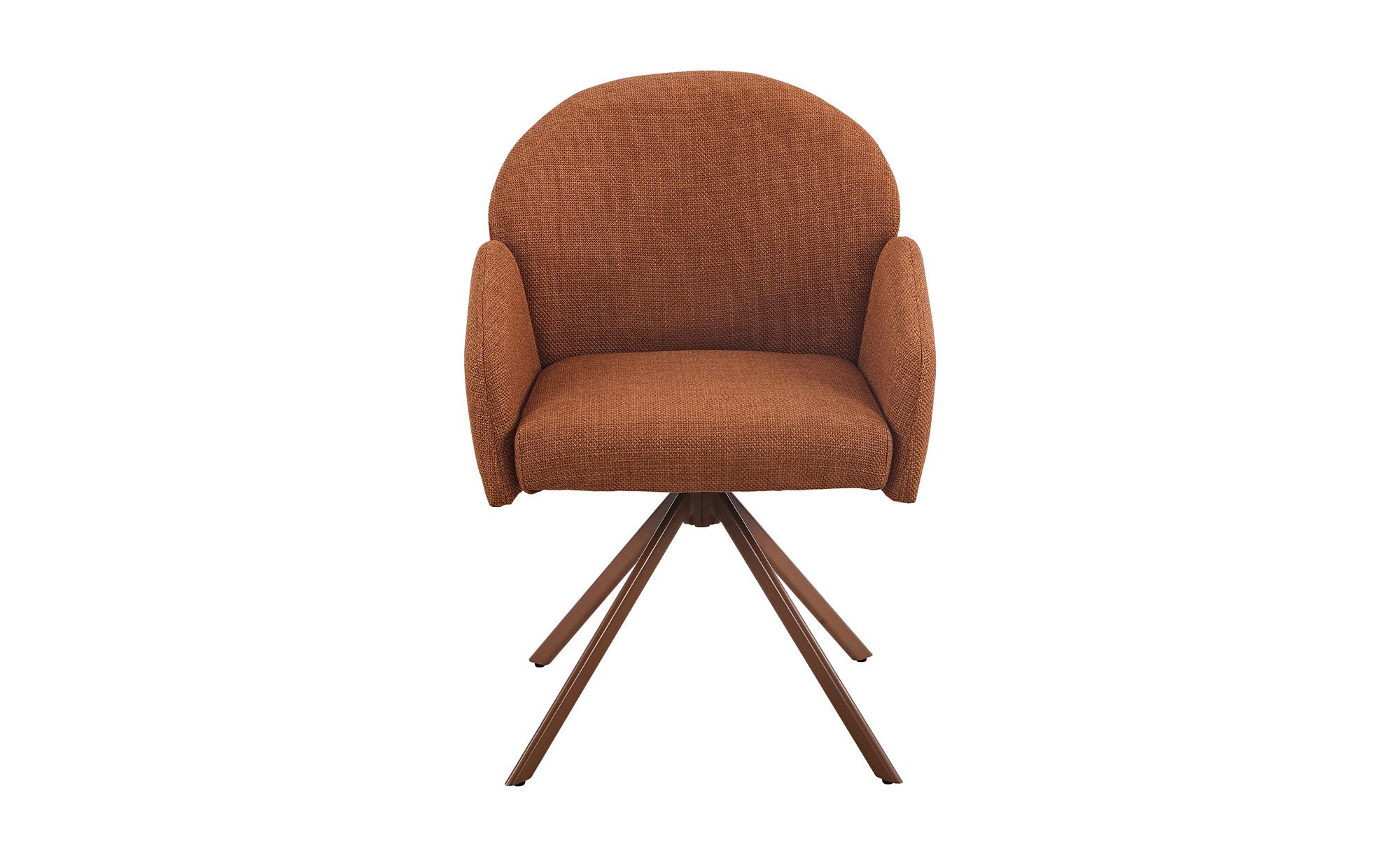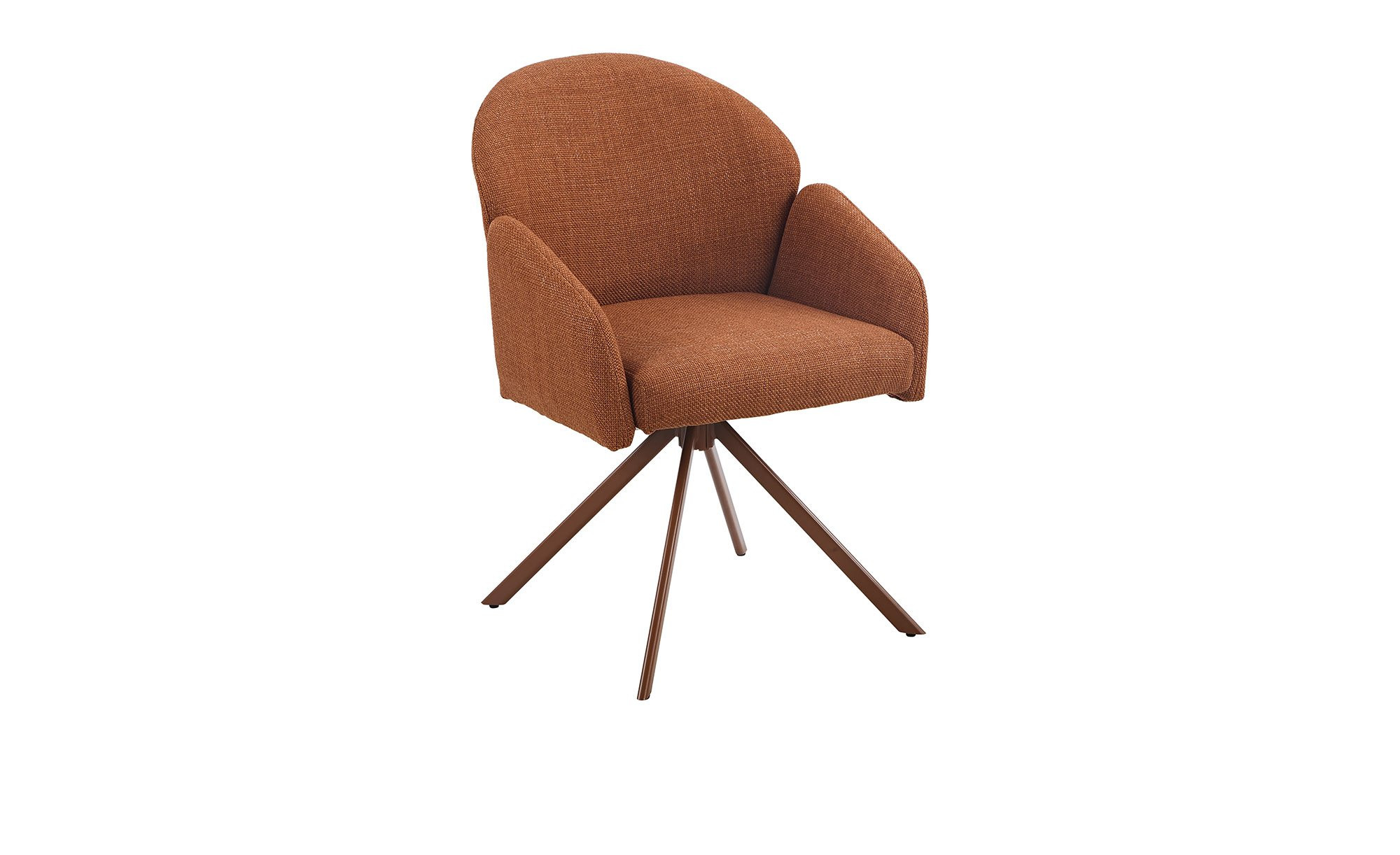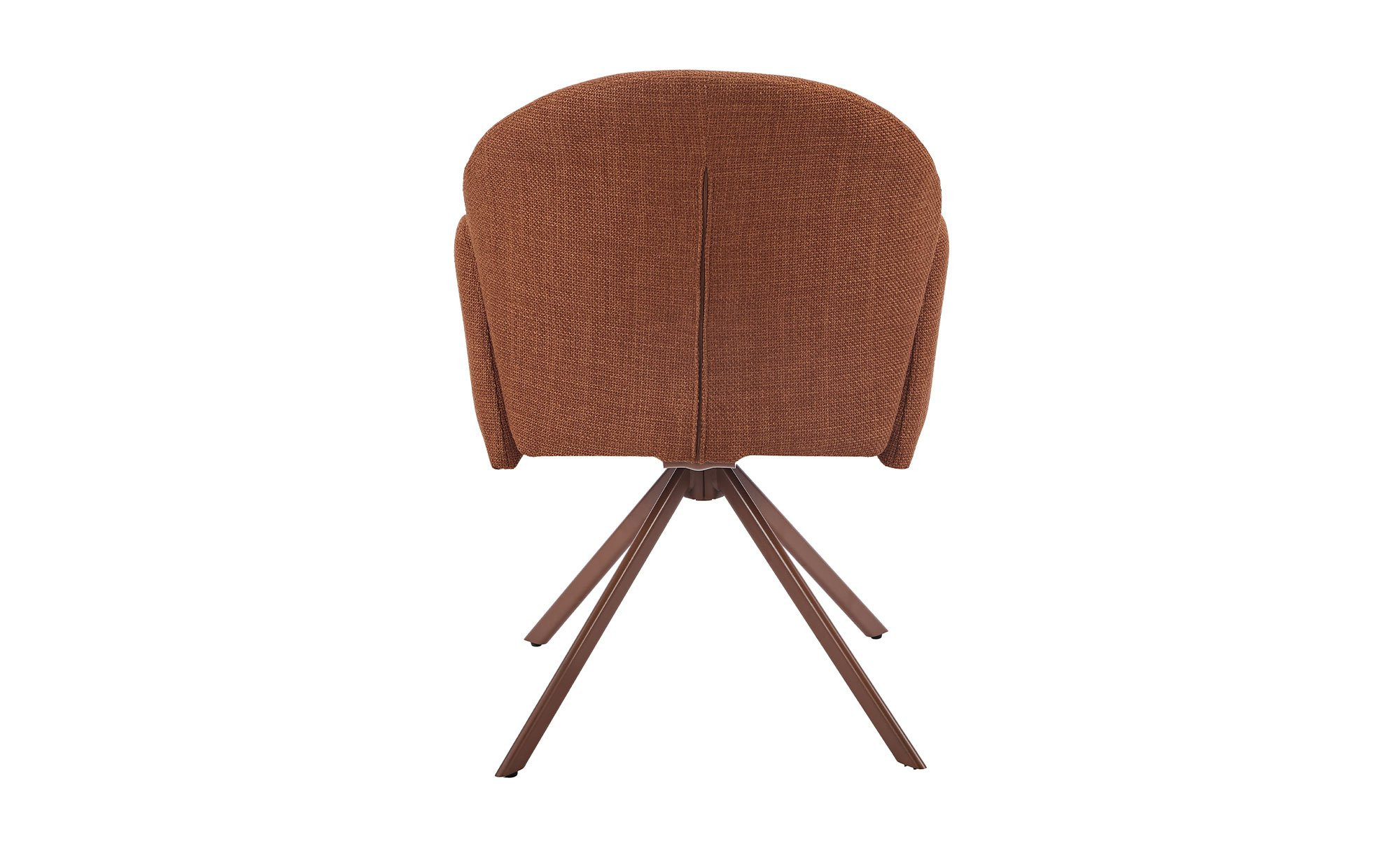 Der Stuhl Hilda vereint modernes Design mit hohem Sitzkomfort. Der ca. 57 x 84 x 61 cm große Artikel ist mit einem rot-braunen Mikrofaserbezug aus 100& % Polyester bezogen und steht auf einem pulverbeschichteten Metallgestell im gleichen Farbton.