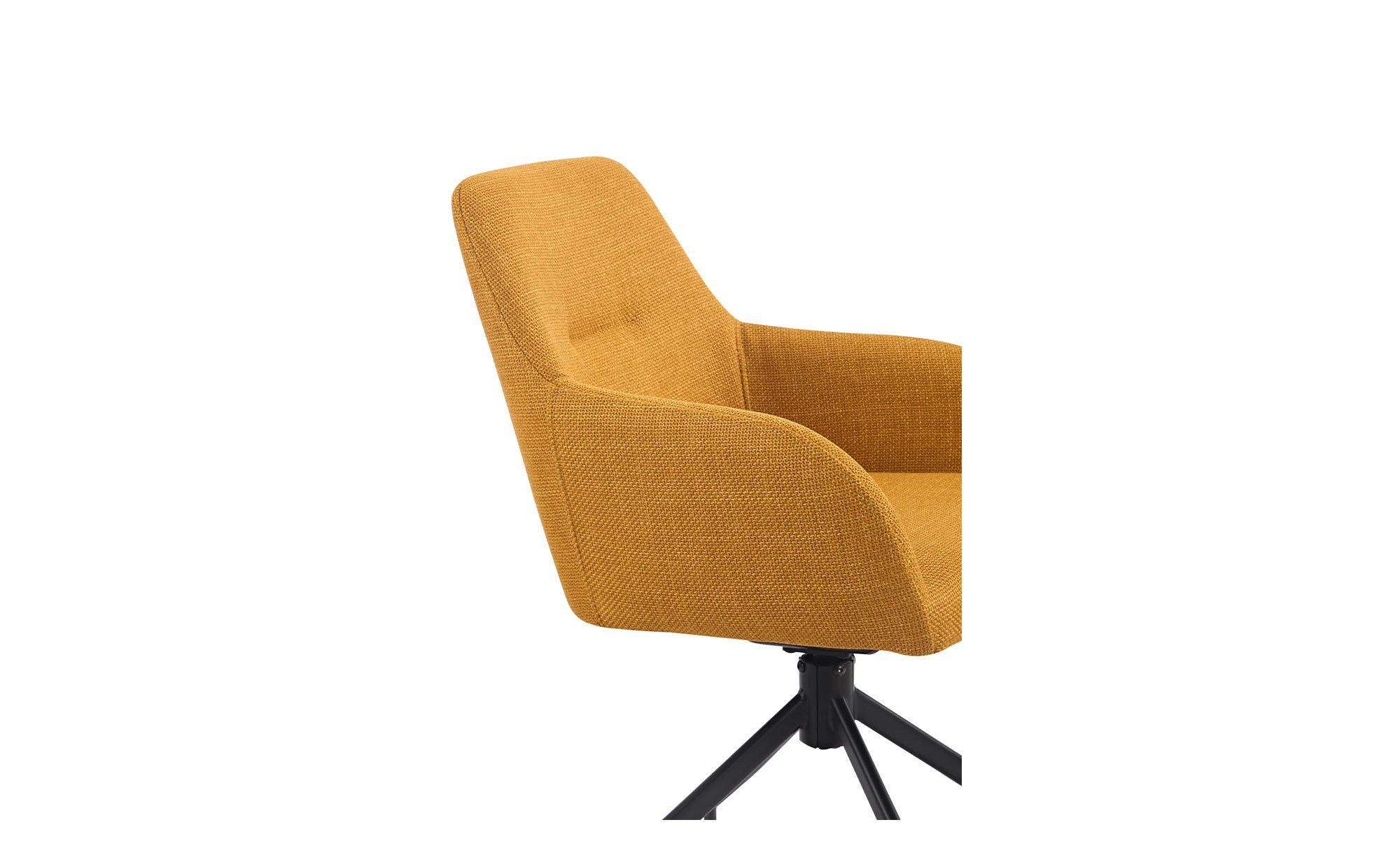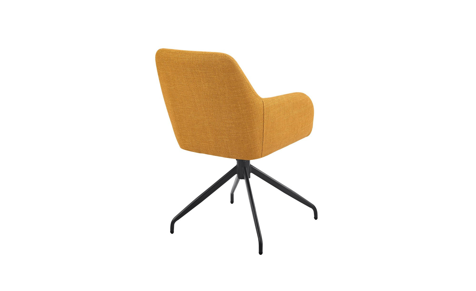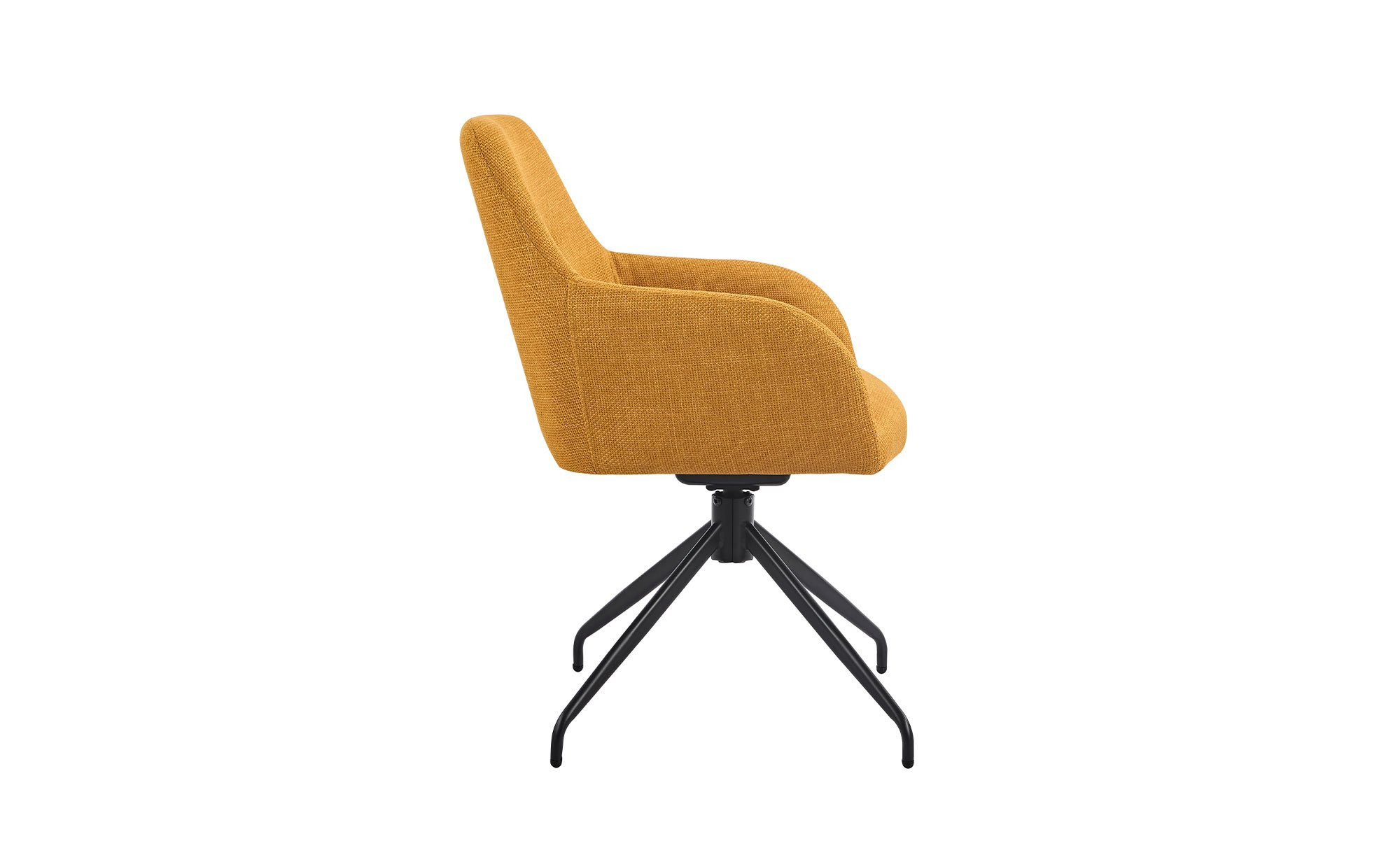 Der gelbe Mikrofaser-Webstoff aus 100 % Polyester verleiht dem Stuhl eine frische, einladende Optik. Das schwarze Metallgestell mit Pulverbeschichtung sorgt für Stabilität und setzt einen stilvollen Kontrast zum Bezug.
