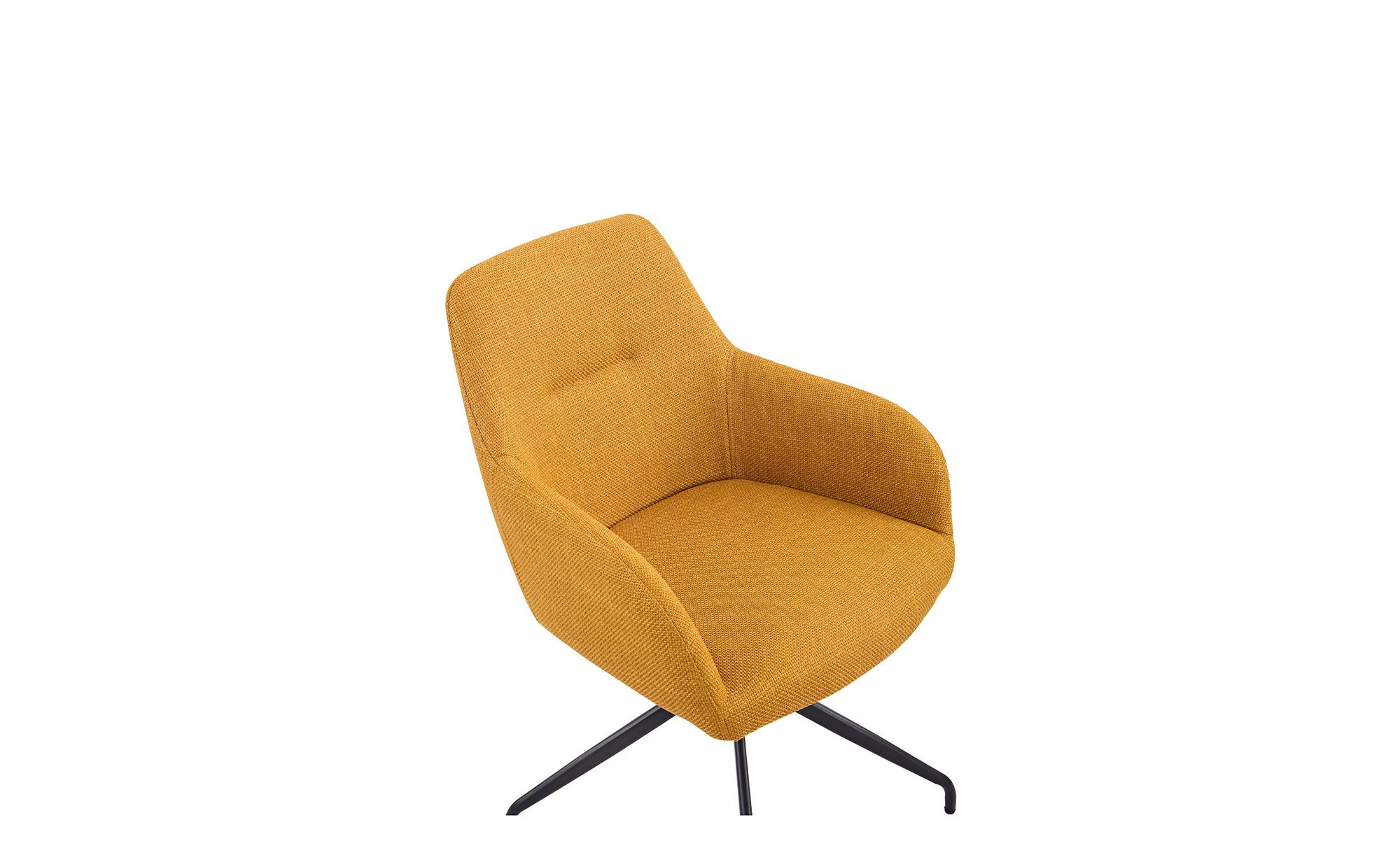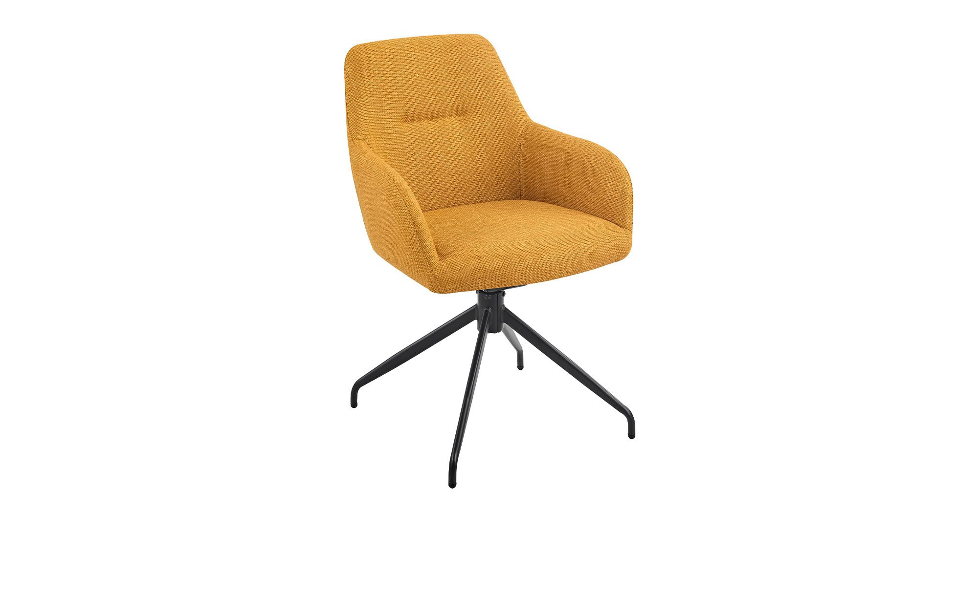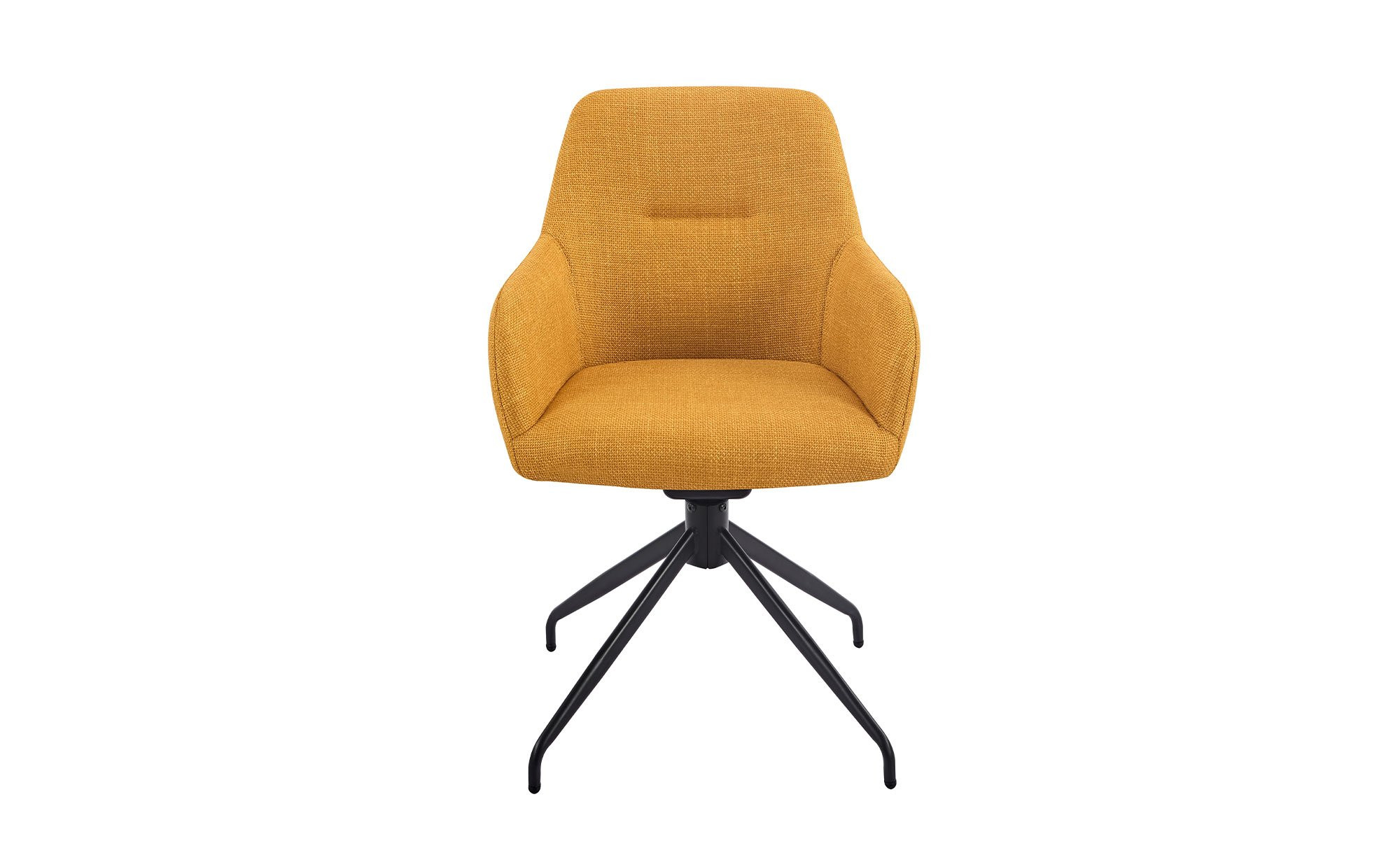 Der gelbe Mikrofaser-Webstoff aus 100 % Polyester verleiht dem Stuhl eine frische, einladende Optik. Das schwarze Metallgestell mit Pulverbeschichtung sorgt für Stabilität und setzt einen stilvollen Kontrast zum Bezug.
